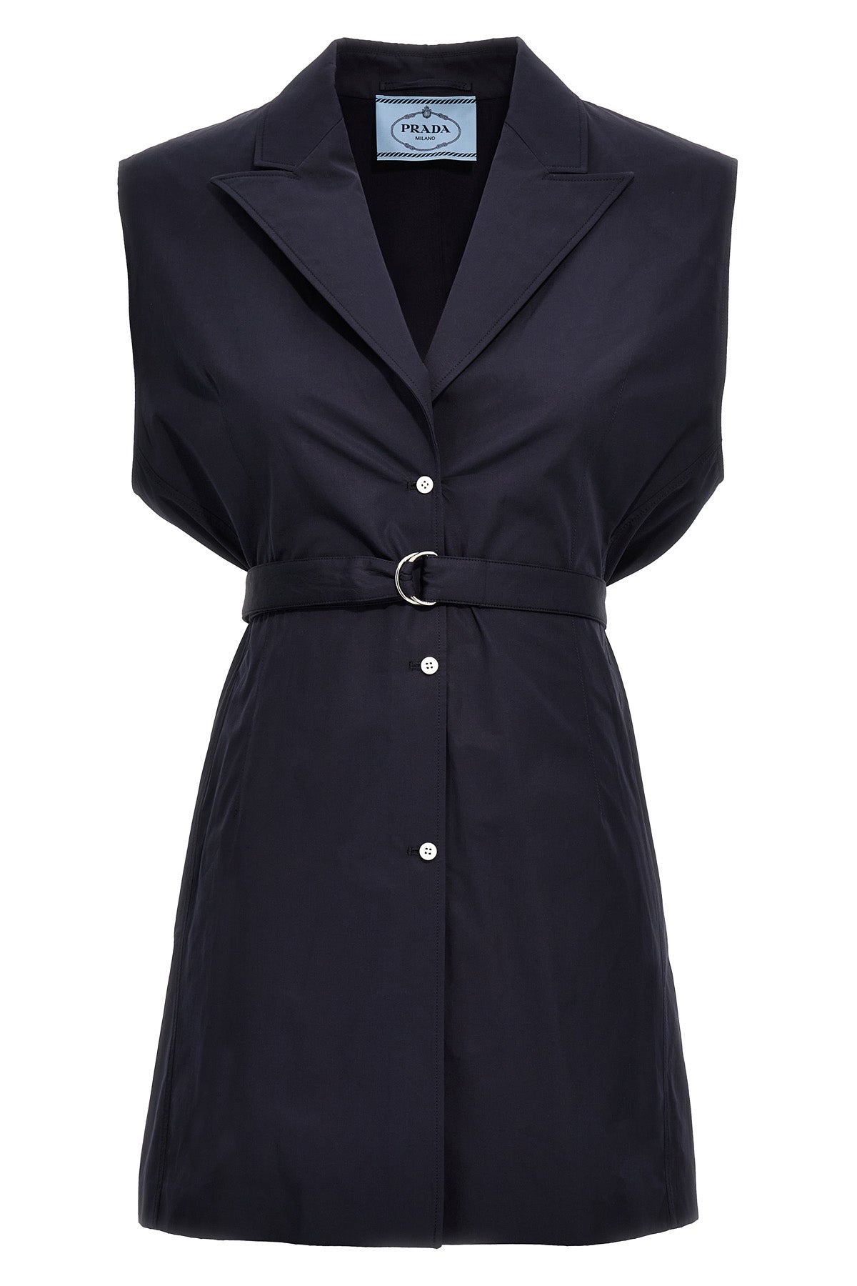 Gilet en popeline de coton avec fermeture à boutons, ceinture à la taille et épaules rembourrées.