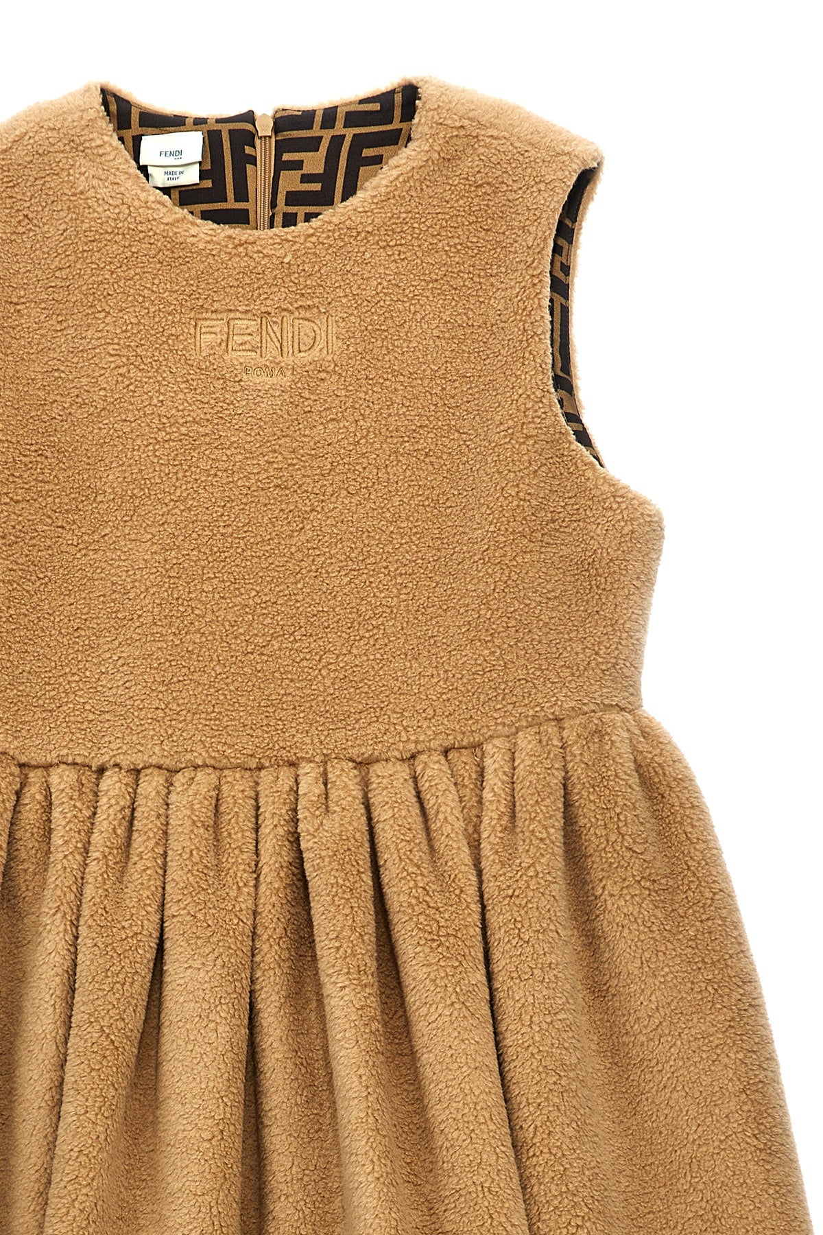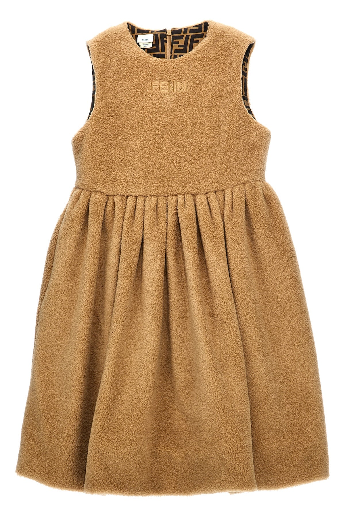 Robe doublée en fausse fourrure, logo brodé sur le devant, poches, fermeture éclair au dos.