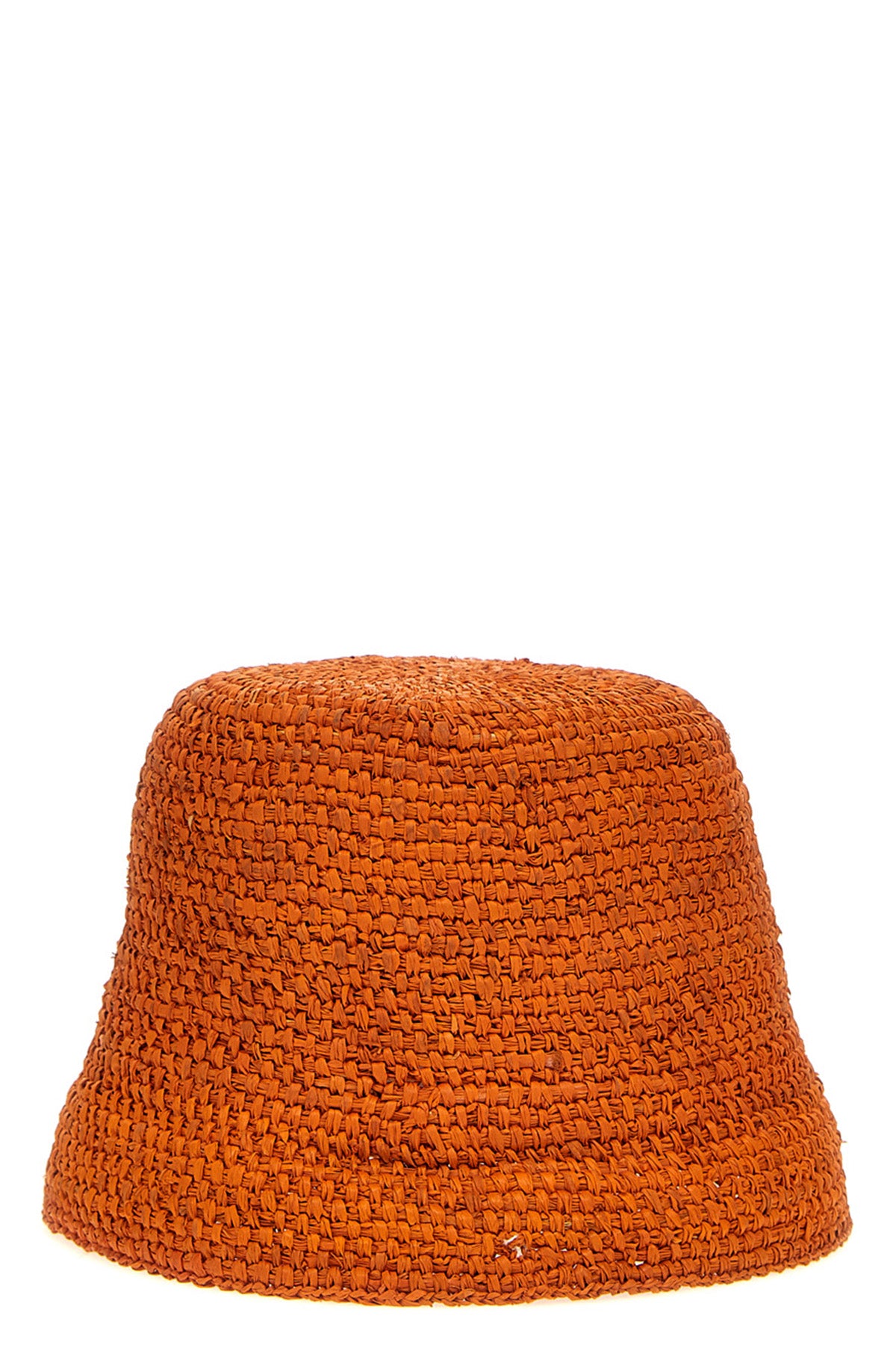 Bob Ficiu en raphia avec écusson logo sur le devant.