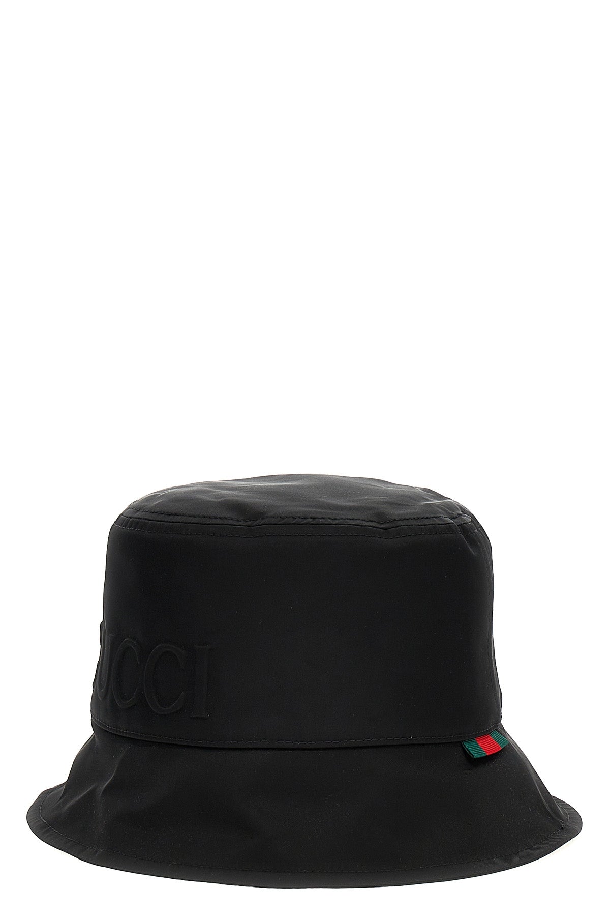 Bob en nylon avec logo Gucci en relief et détail anneau orné d'un ruban Web.