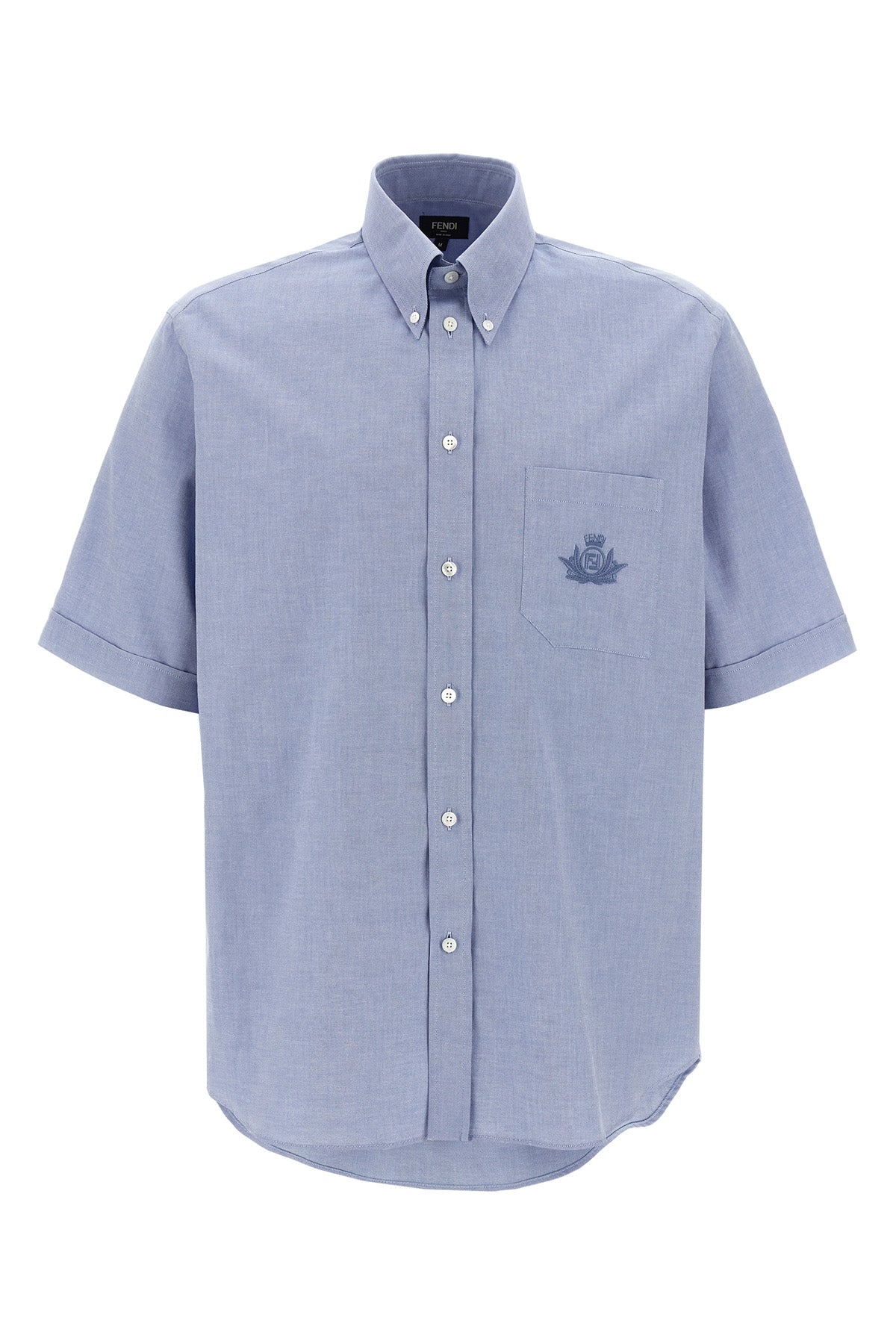 Chemise en coton Oxford à boutons, poche ornée du logo Fendi brodé, fermeture boutonnée sur le devant, manches courtes à revers aux poignets.