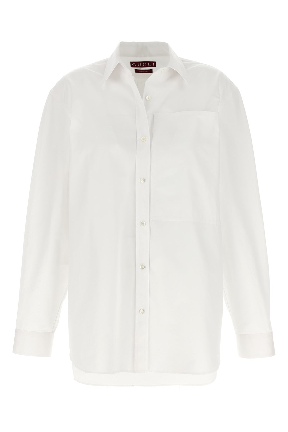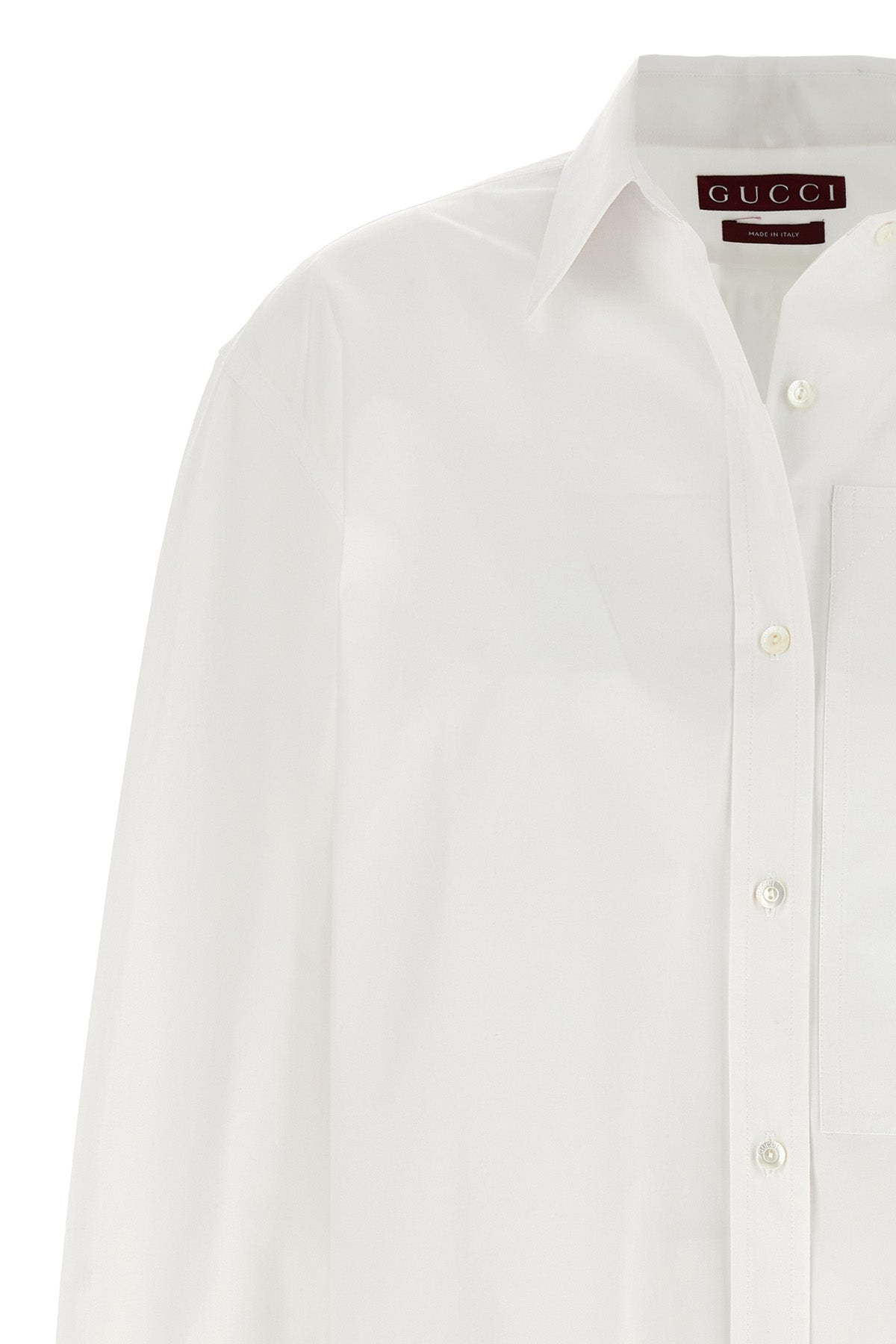 Chemise en popeline de coton à col orné d'un logo brodé, poche avant, fermeture boutonnée, manches longues à poignets boutonnés.