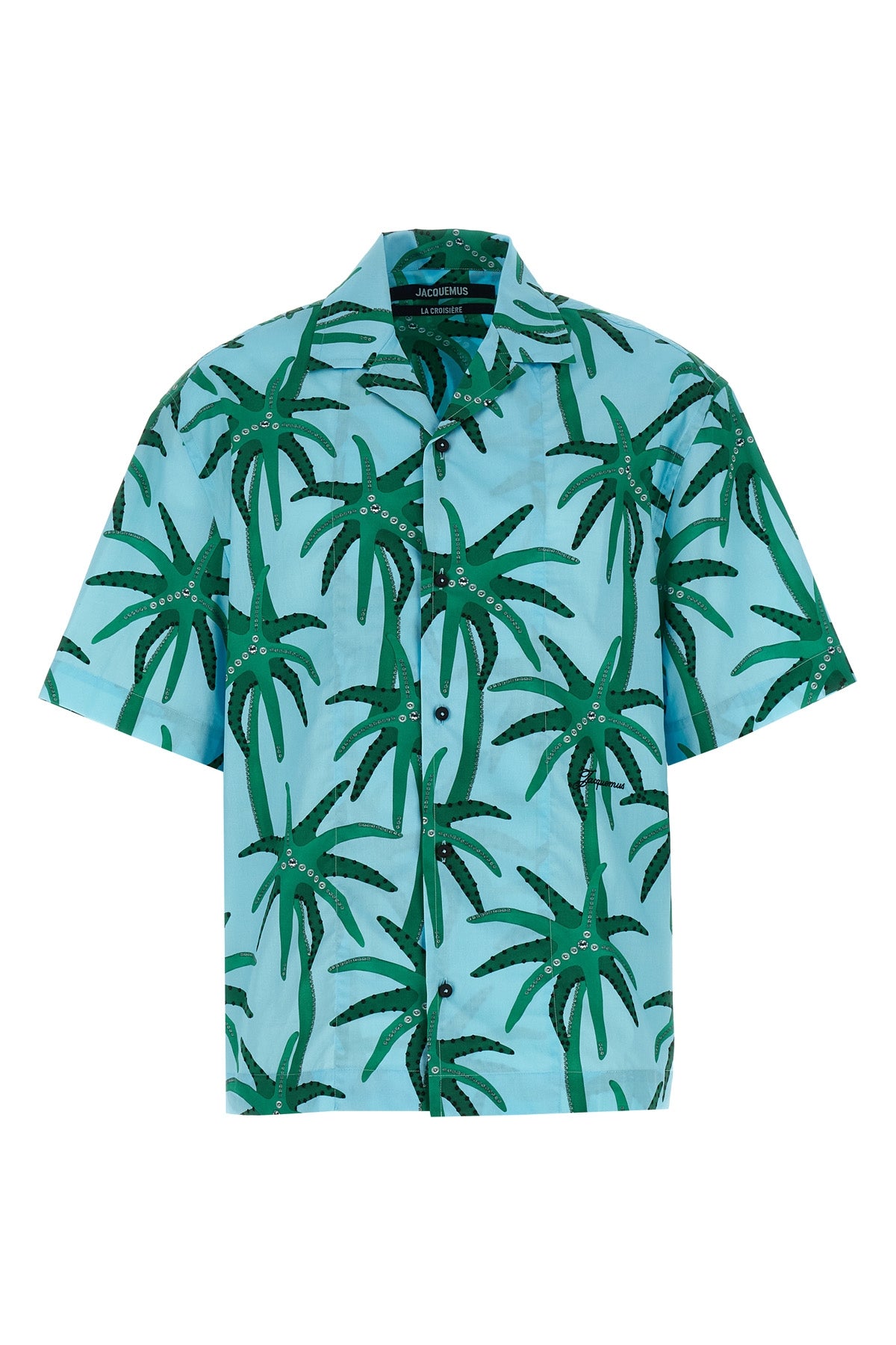 Chemise Jean' en popeline de coton imprimée intégralement, logo brodé sur le devant, fermeture boutonnée, manches courtes à épaules tombantes.