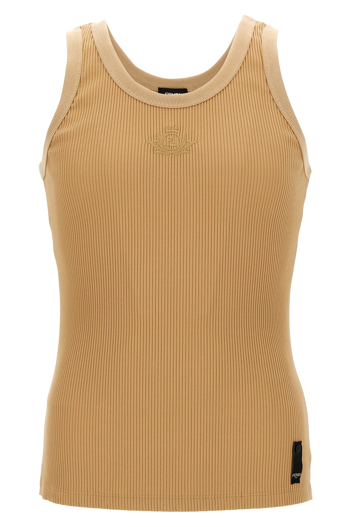 Débardeur en tissu côtelé extensible avec broderie ton sur ton du logo Fendi sur le devant et encolure ronde.