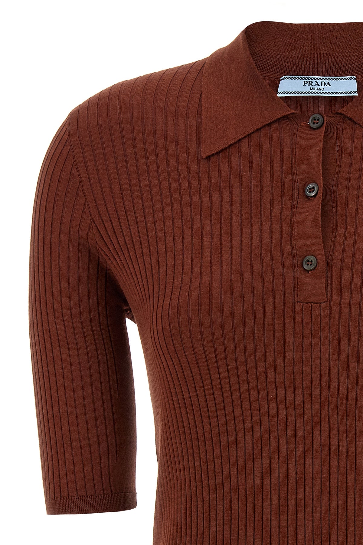 Polo en coton côtelé extensible, écusson logo au dos, col et boutons, manches 3/4.