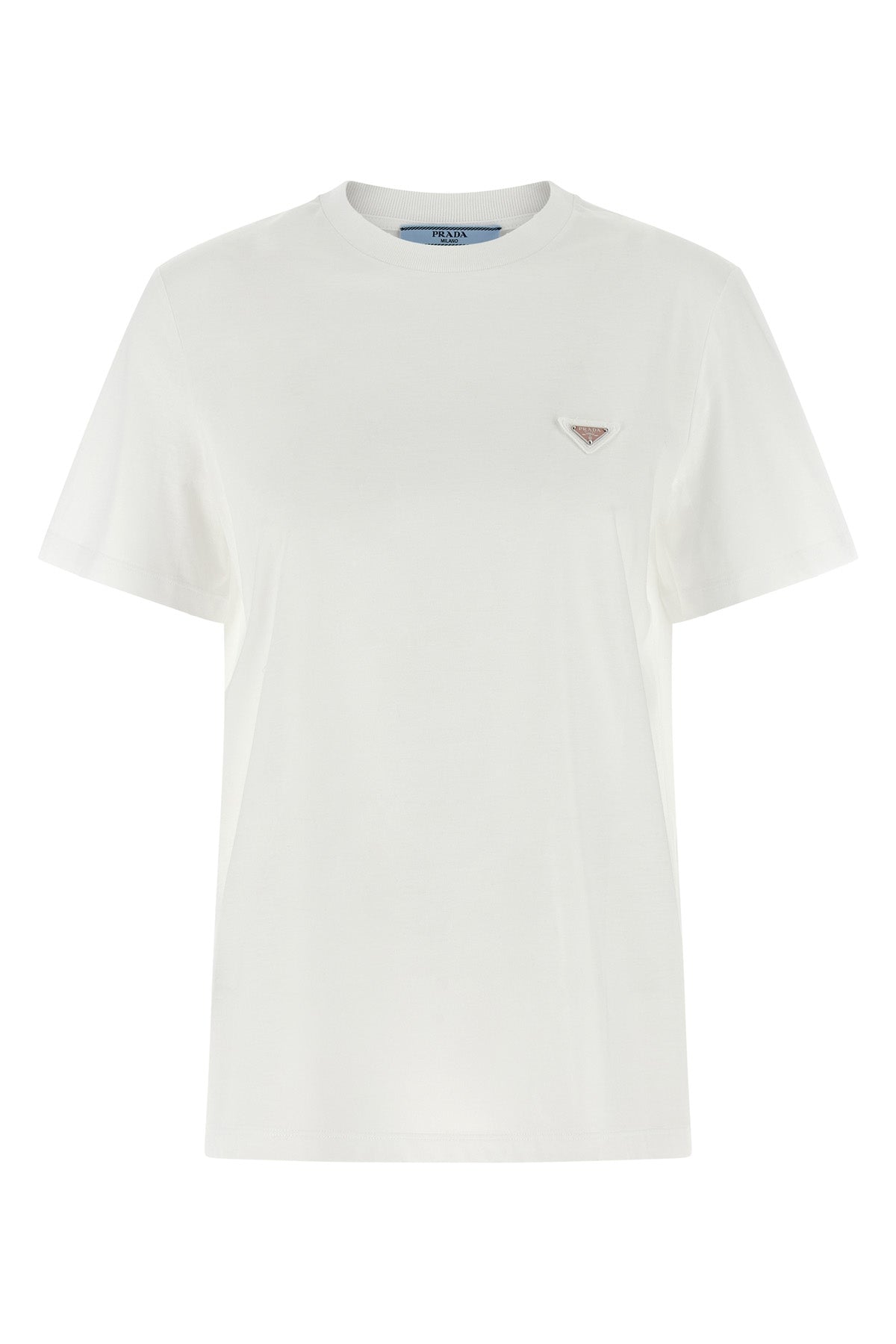 T-shirt en coton effet usé, logo triangulaire en métal émaillé sur le devant, col rond, manches courtes.