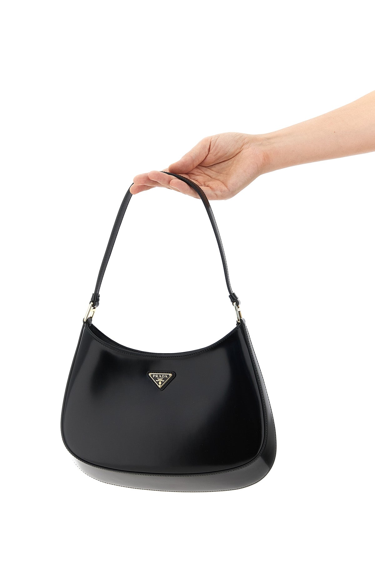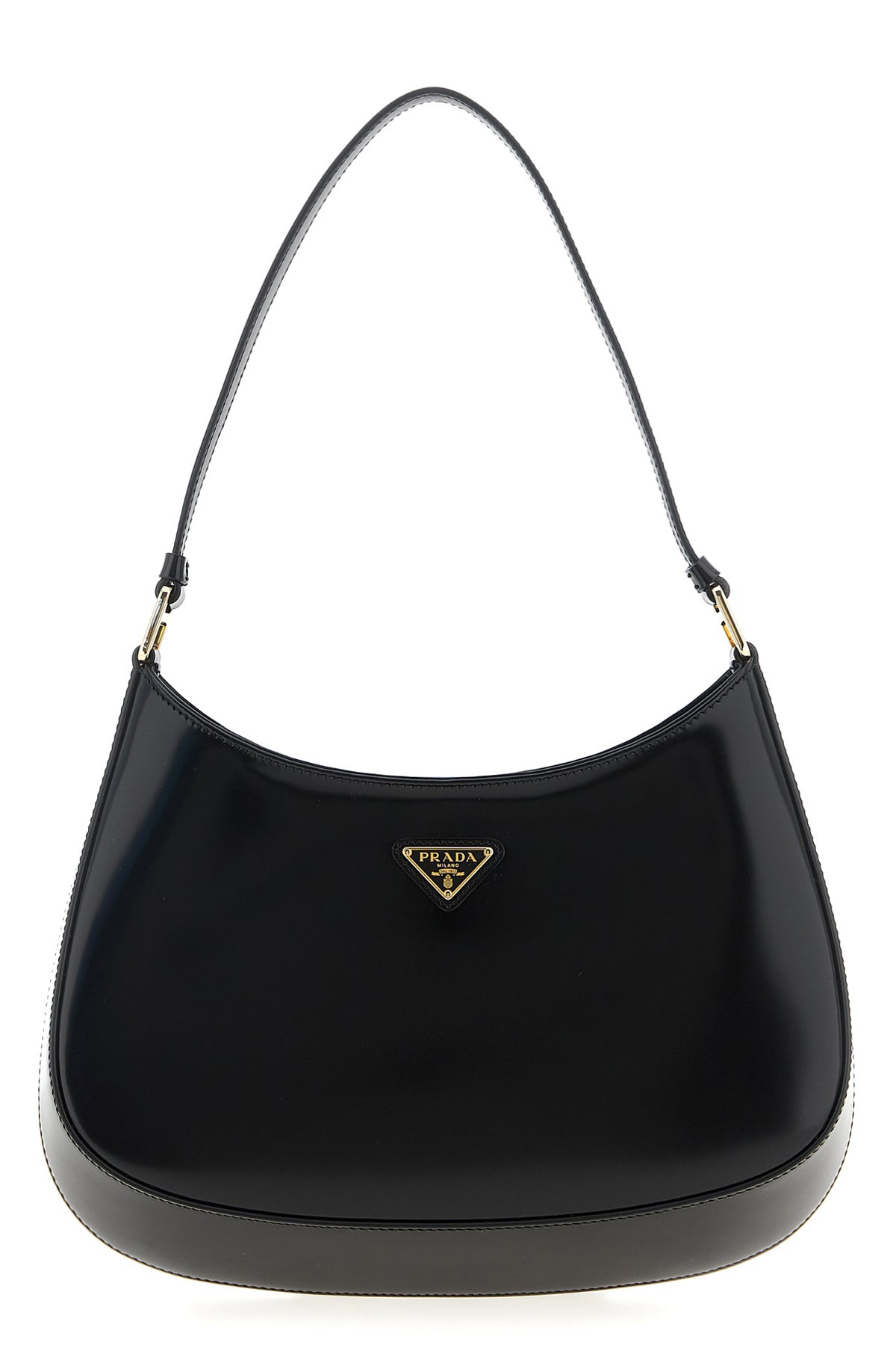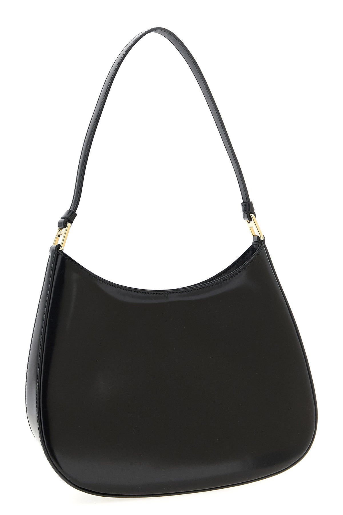 Sac bandoulière Cleo en cuir brossé avec fermeture magnétique, poignée réglable et logo triangulaire en métal émaillé sur le devant.