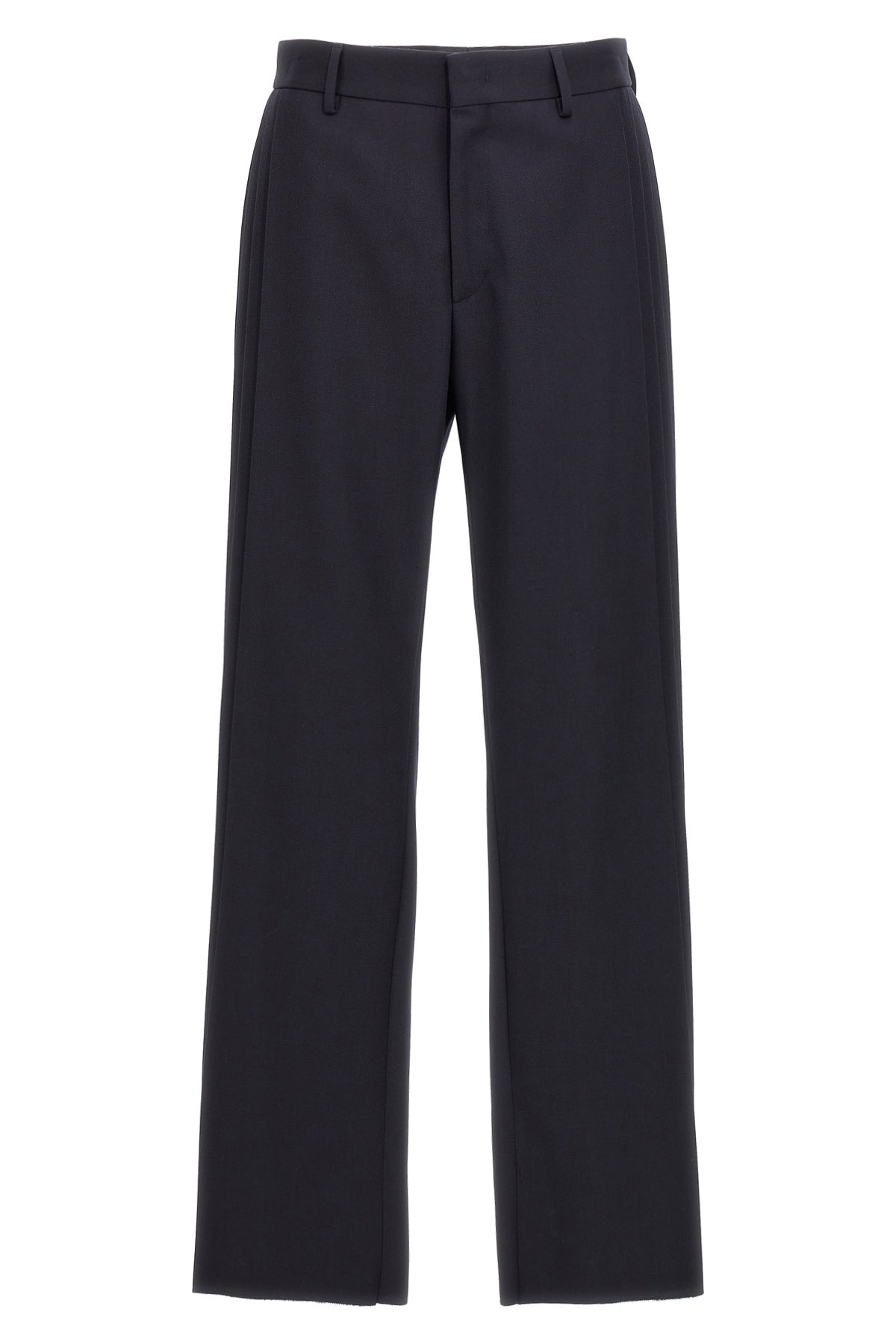 Pantalon en crêpe de laine mélangée, plis sur les côtés, fermeture éclair à crochet et bouton, poches.