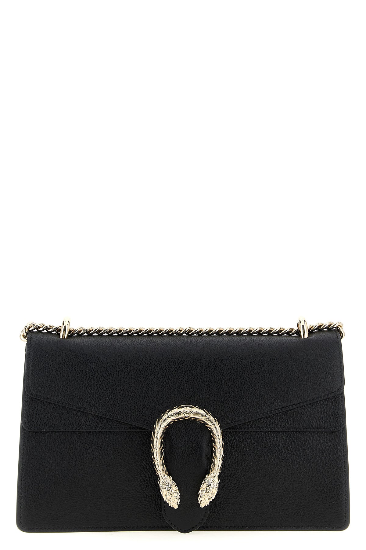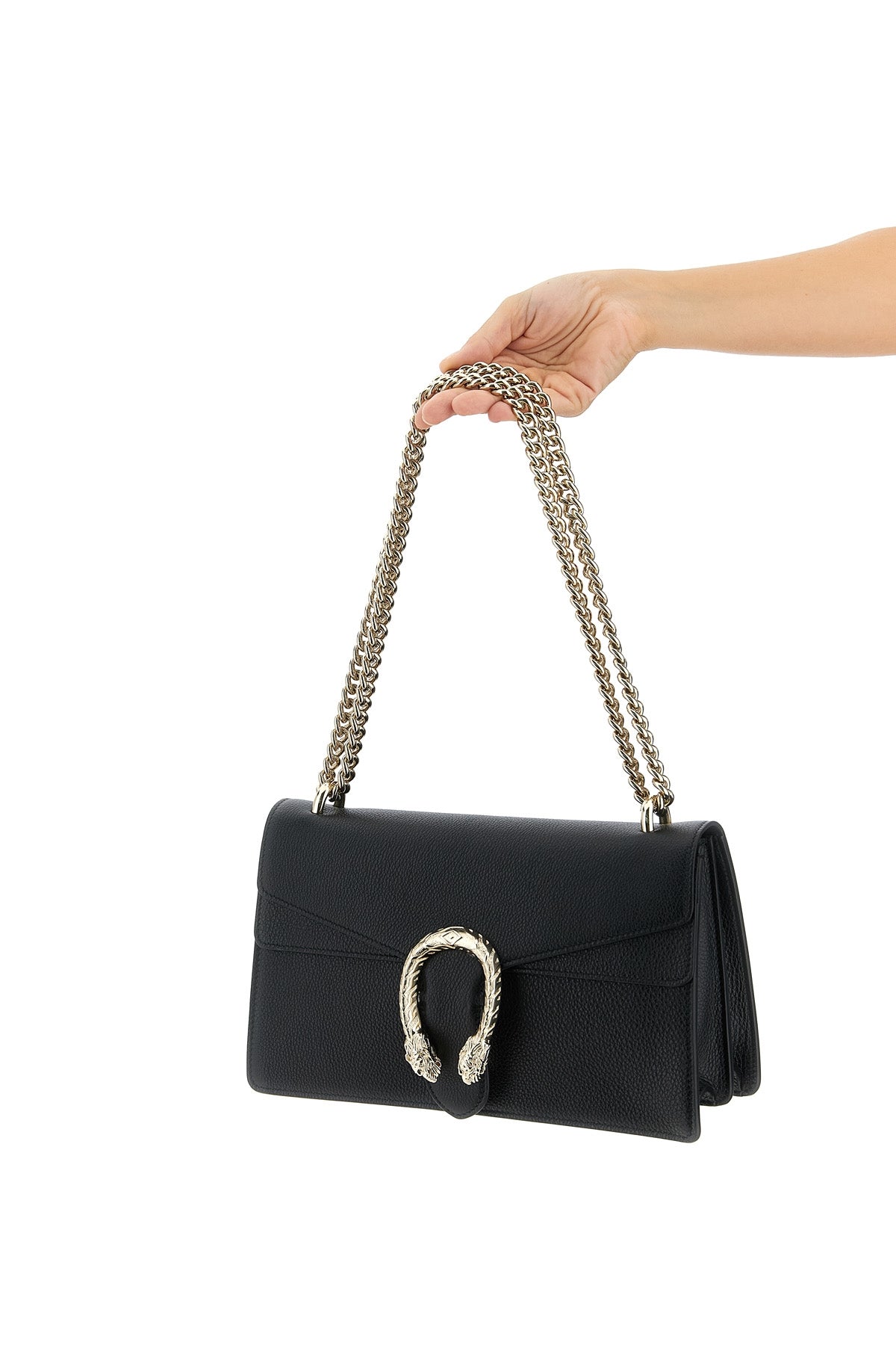Sac bandoulière Dionysus moyen en cuir martelé, doublure en microfibre, fermeture à rabat avec mécanisme d'emboîtement et détail tête de tigre en métal sur le devant, double soufflet, bandoulière chaîne coulissante.