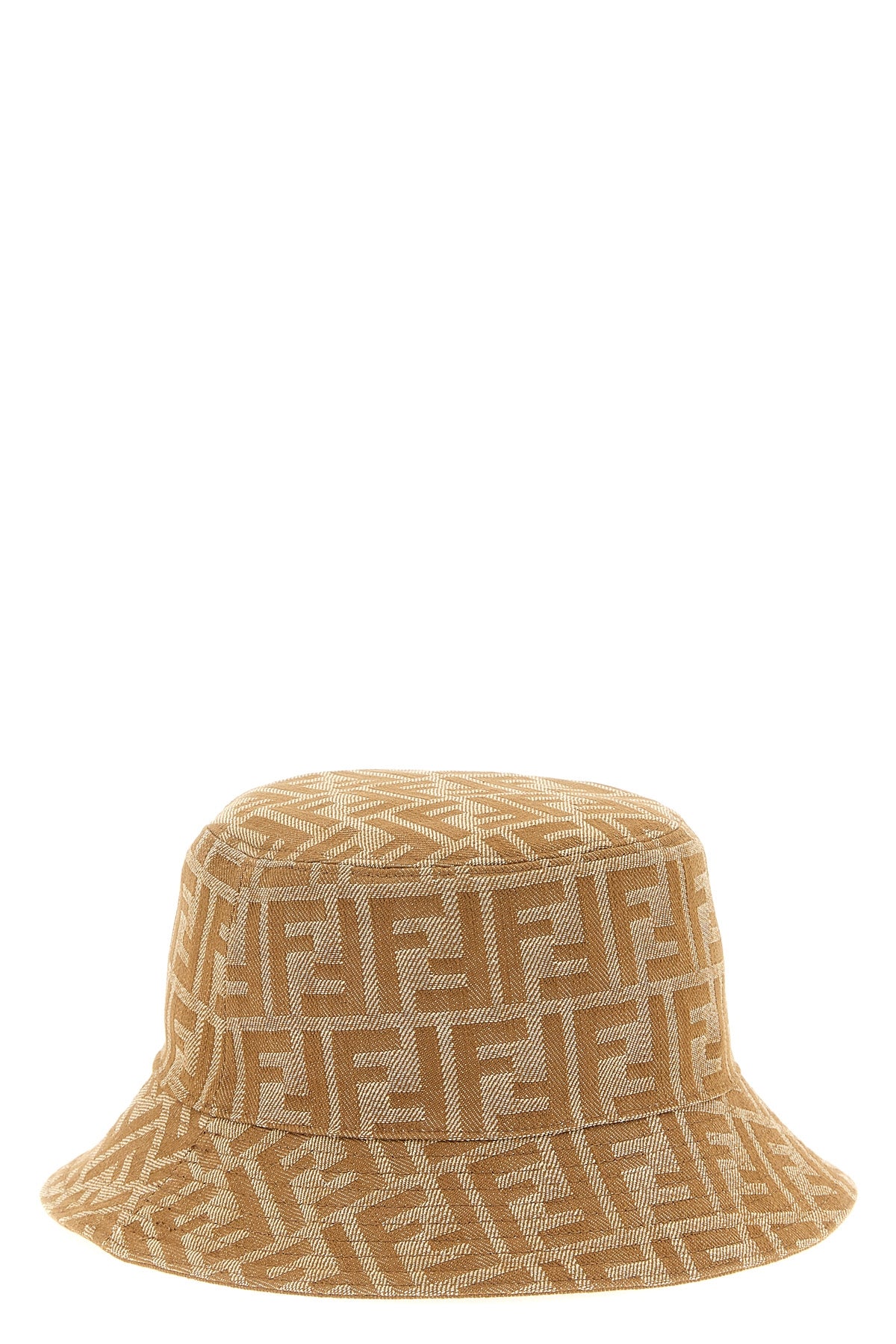 Bob réversible en toile de coton avec logo brodé sur le devant et motif F sur toute la surface, modèle à bord étroit.