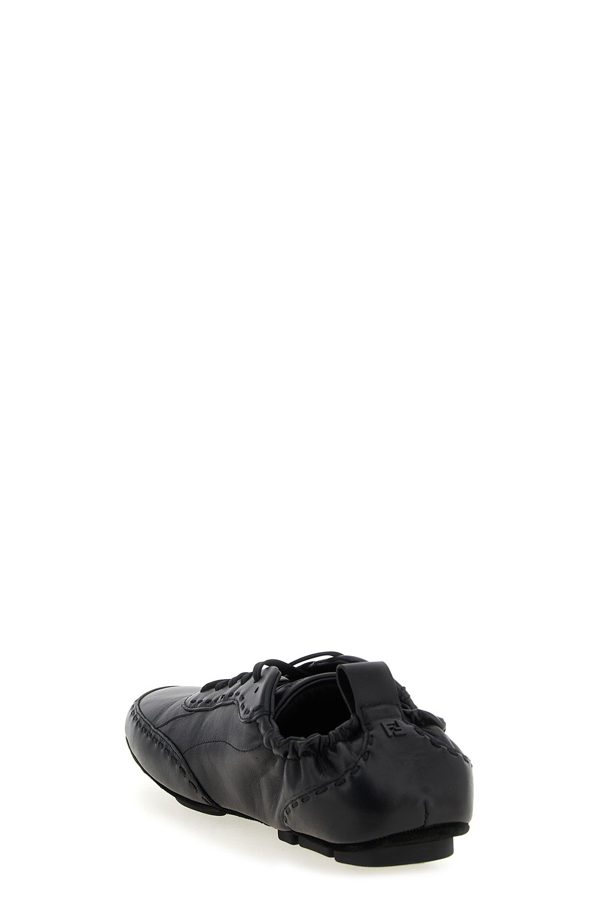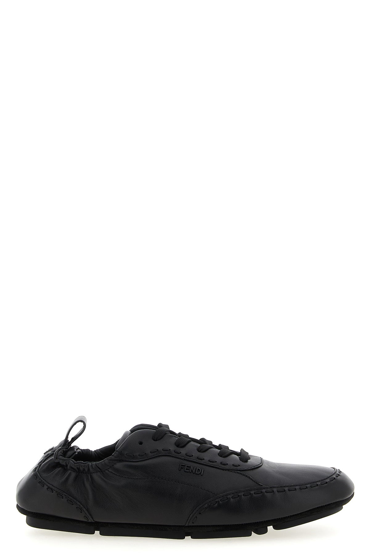 Baskets Fendi Fit' en cuir souple de haute qualité, finies avec des surpiqûres macro ton sur ton réalisées à la main, fermeture à lacets, logo latéral, construction souple avec insert élastique et rembourrage au talon, semelle en caoutchouc.