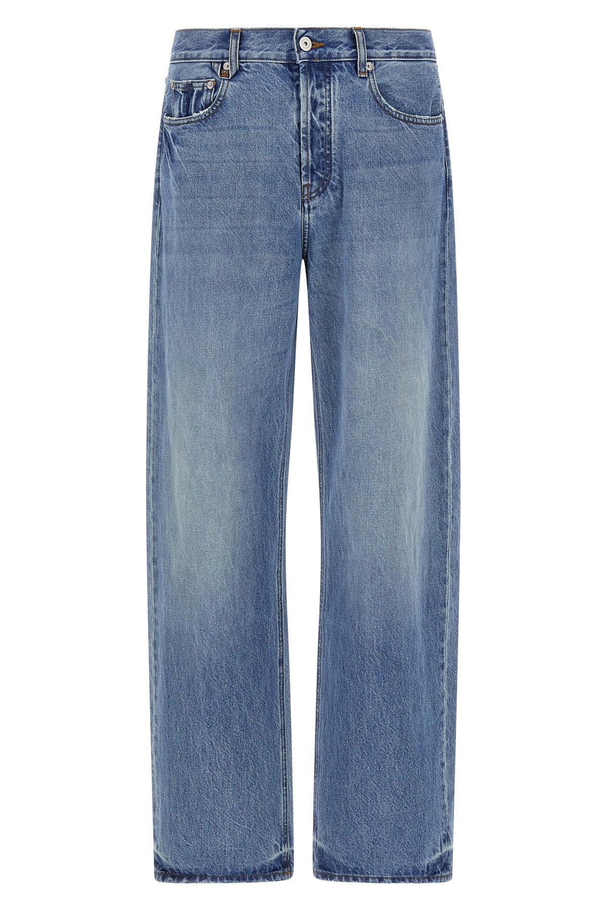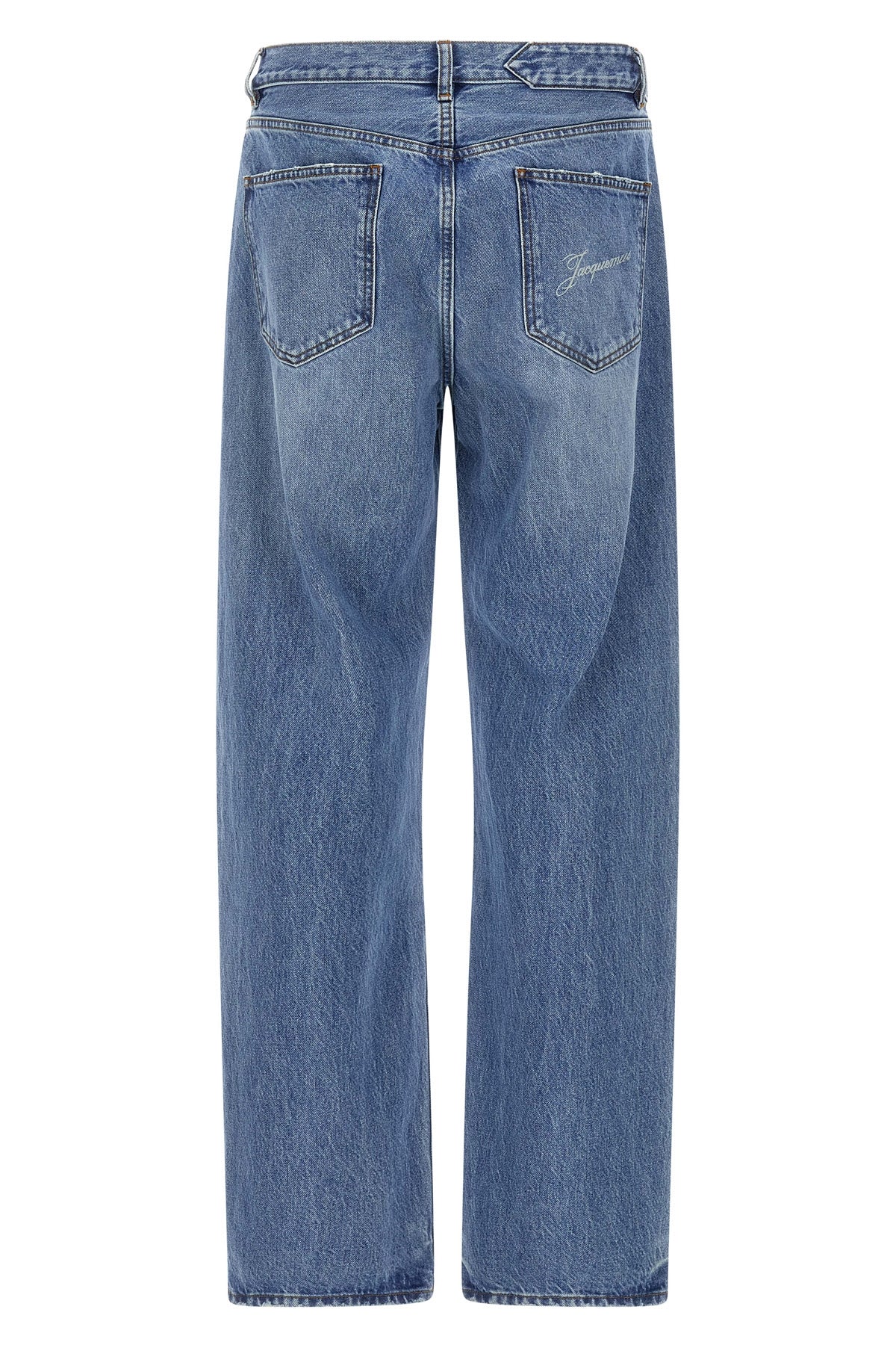 Jean en denim de coton Le De-Nime Droit, taille mi-haute droite, fermeture boutonnée sur le devant, logo imprimé sur la poche arrière.