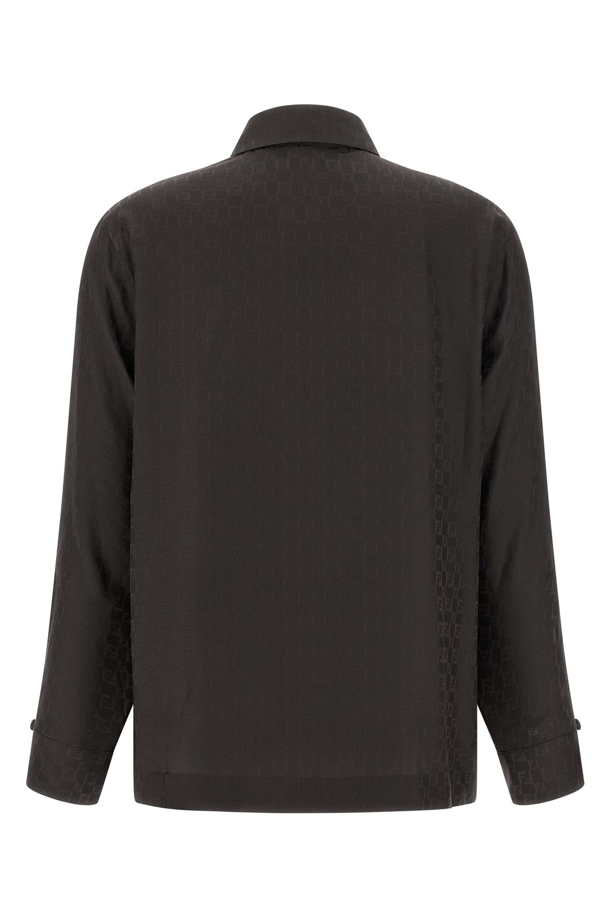 Chemise en jacquard de soie à motif ' Ff ' intégral, fermeture à boutons croisés sur le côté, col, manches longues à poignets boutonnés.