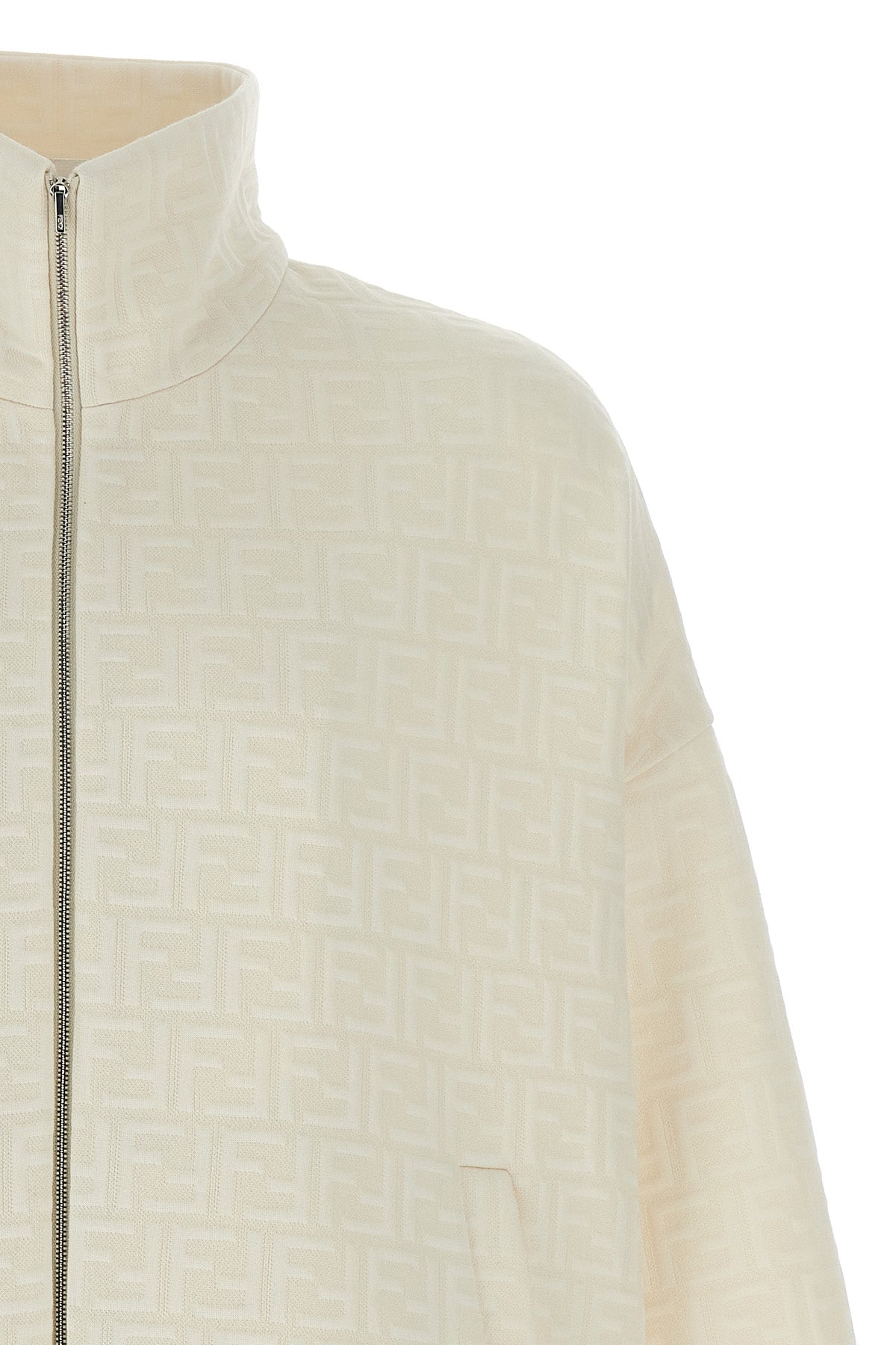 Sweat-shirt en mélange de coton avec logo FF en relief sur toute la surface, fermeture éclair, col montant et poches.