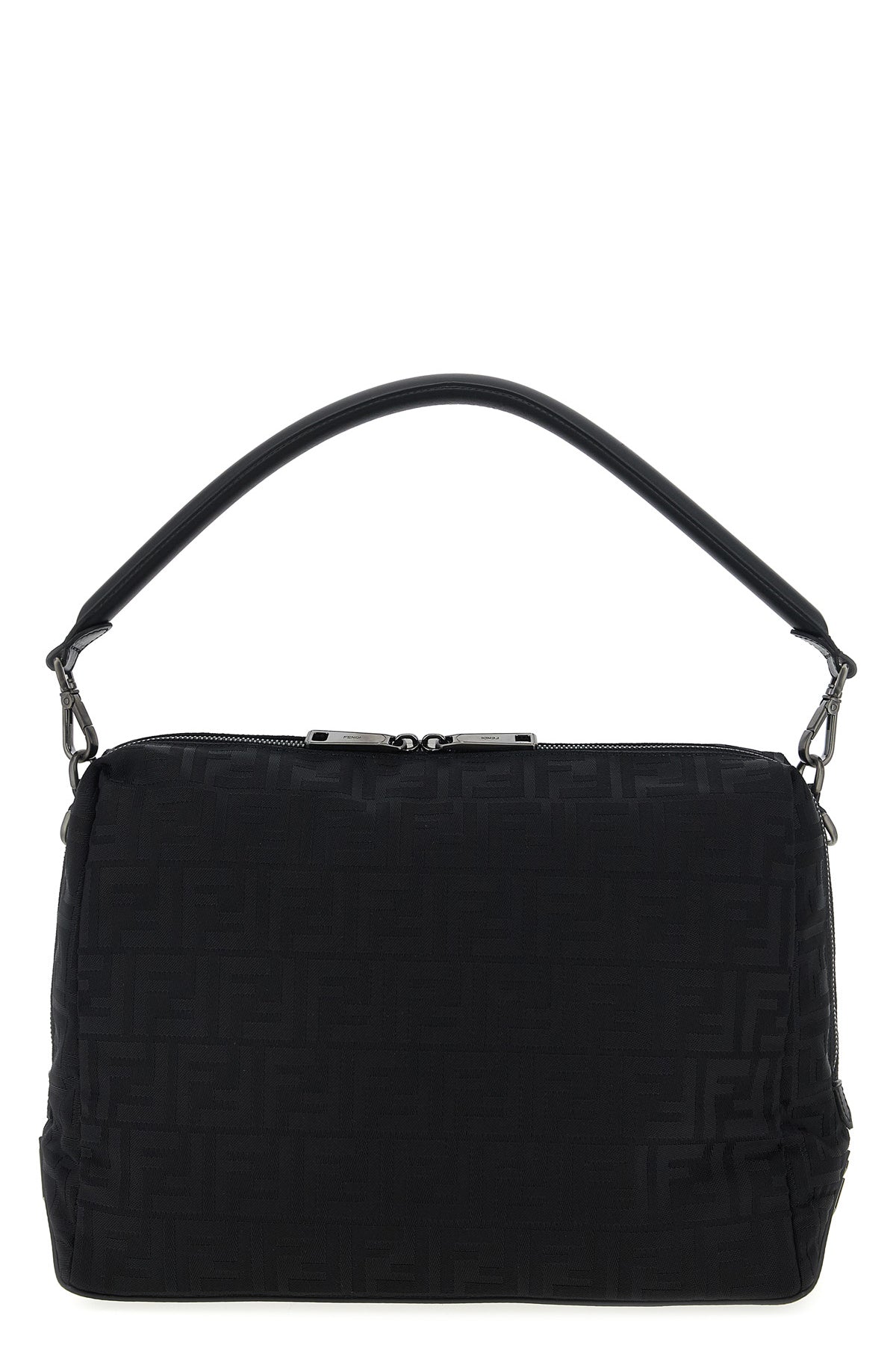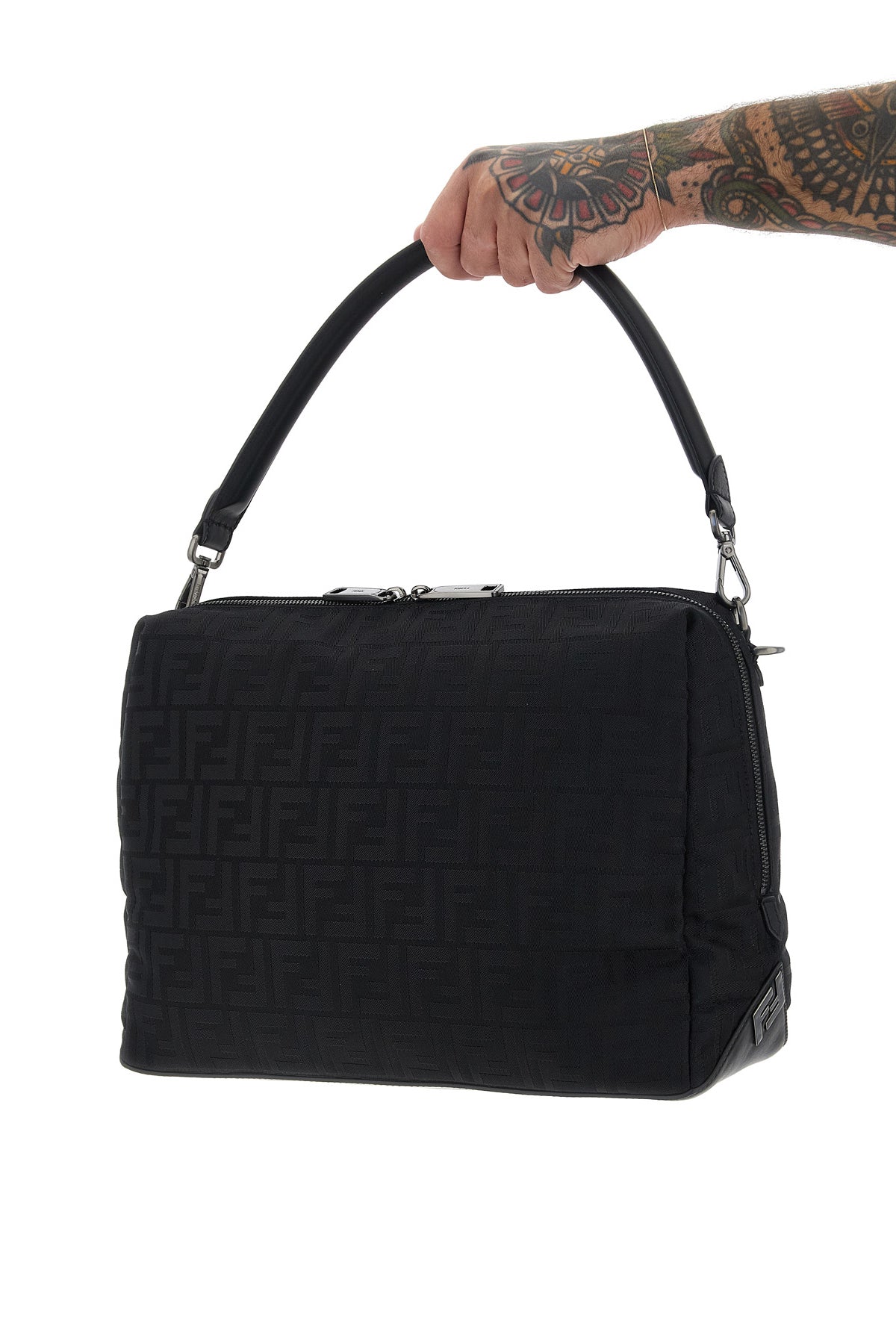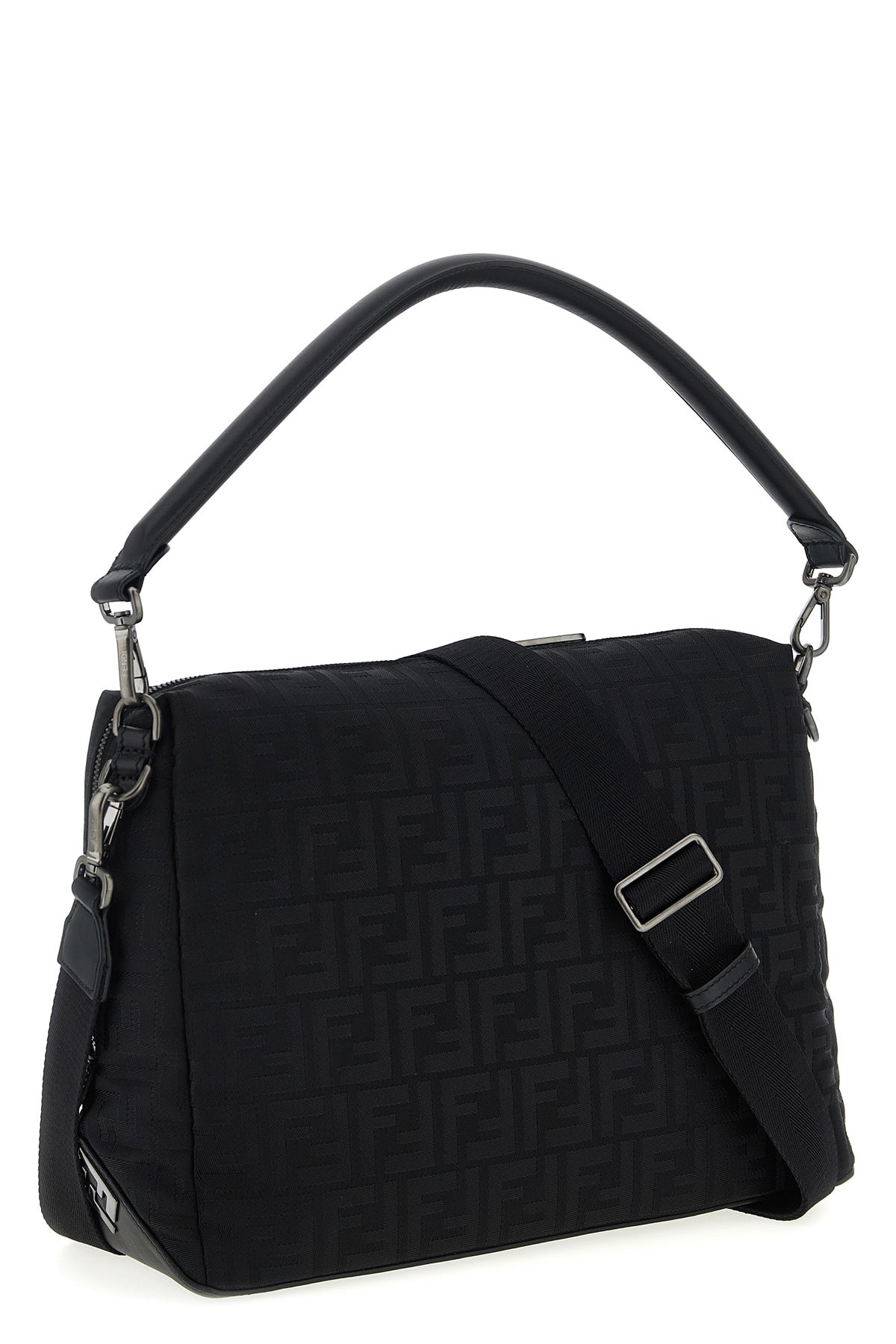 Sac bandoulière Fendi Lui' grand format en nylon rembourré avec base et poignée en cuir de veau lisse ton sur ton, logo métallique avec finition ruthénium satiné sur les côtés, fermeture zippée sur le dessus, poignée amovible, bandoulière réglable et amovible.