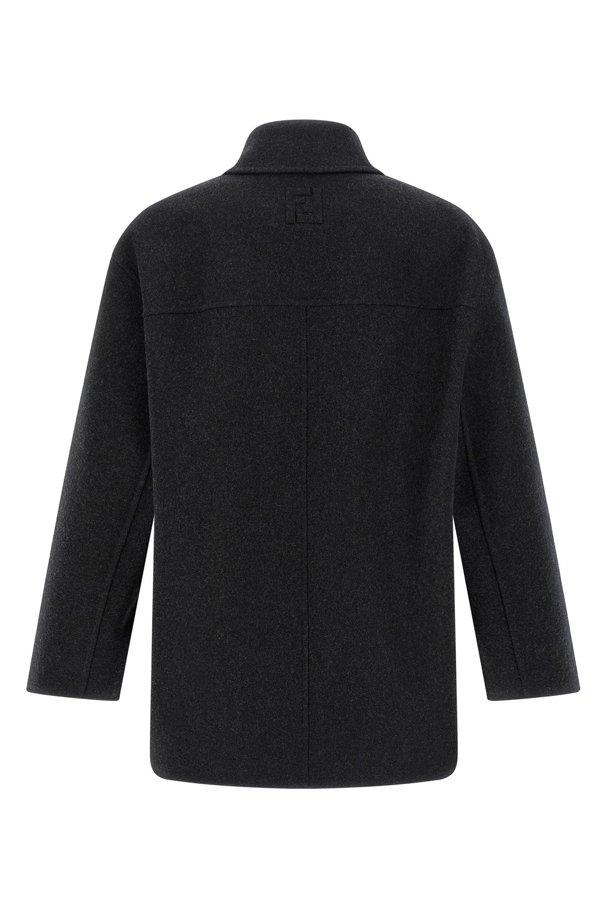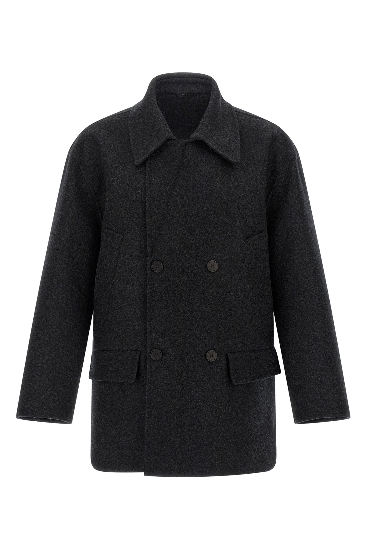Manteau en feutre de laine double mélange, style caban croisé avec fermeture boutonnée sur le devant, col chemise, poches, manches longues à épaules tombantes, non doublé.