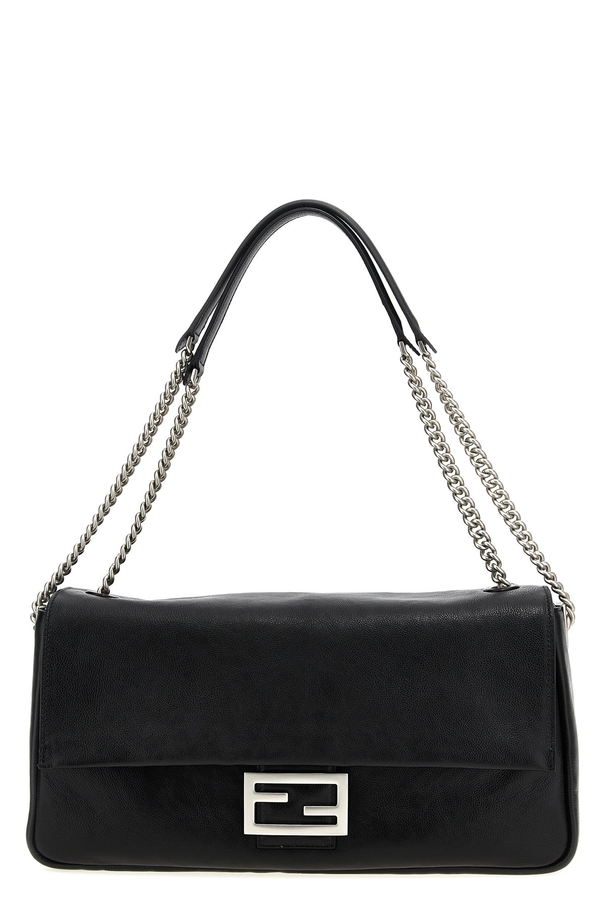 Sac bandoulière Baguette Chain Large en cuir, fermeture à rabat avec logo en métal, poignée courte fixe, bandoulière chaîne.