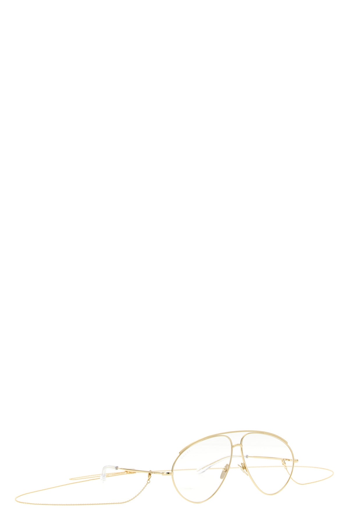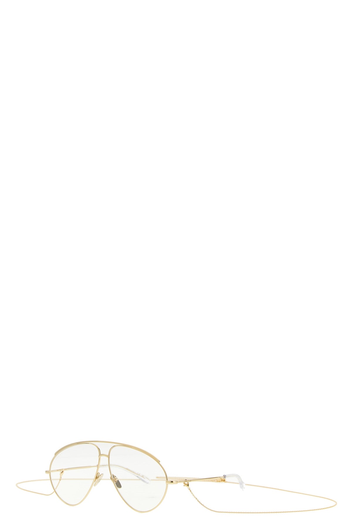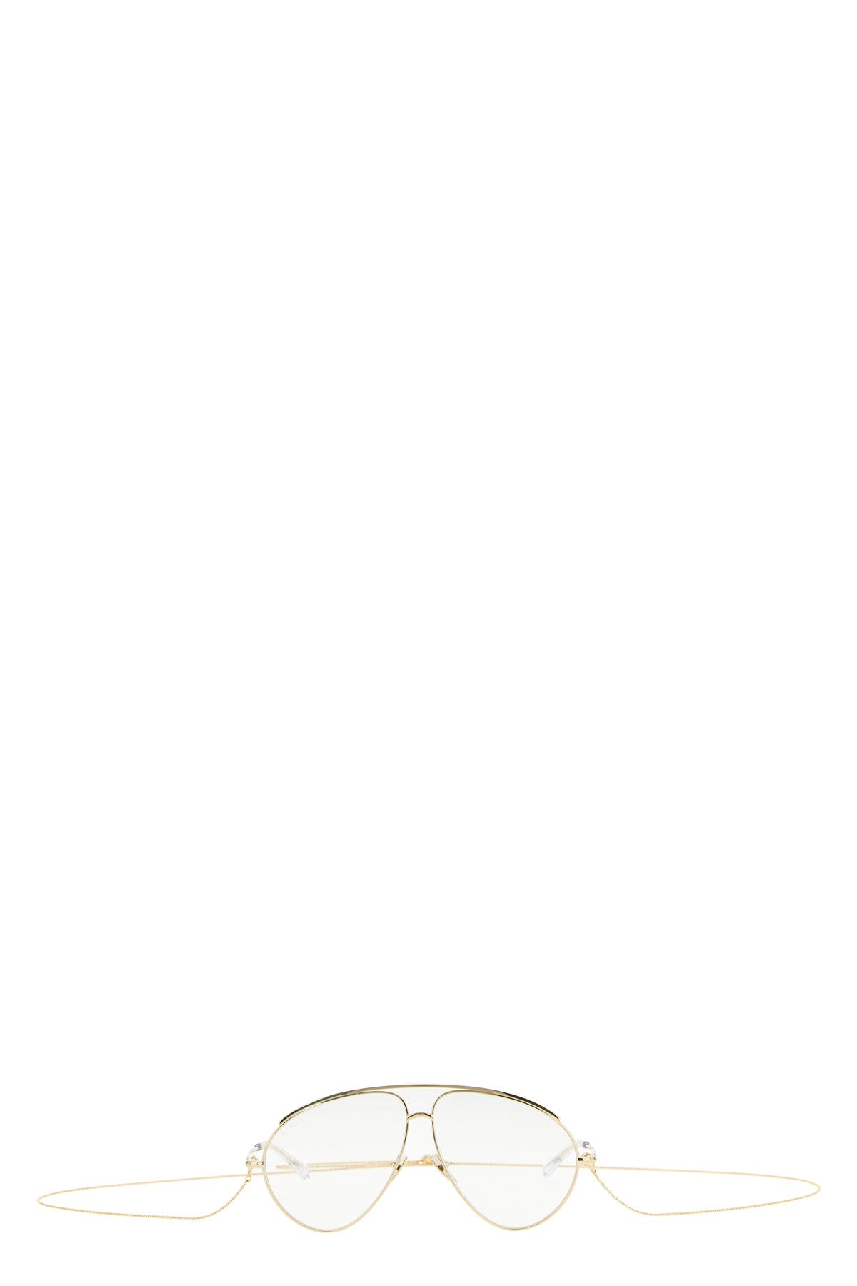 Lunettes de soleil aviateur en métal avec logo gravé sur les branches, verres transparents, chaîne amovible avec logo Incrocio GG sur la fermeture réglable.