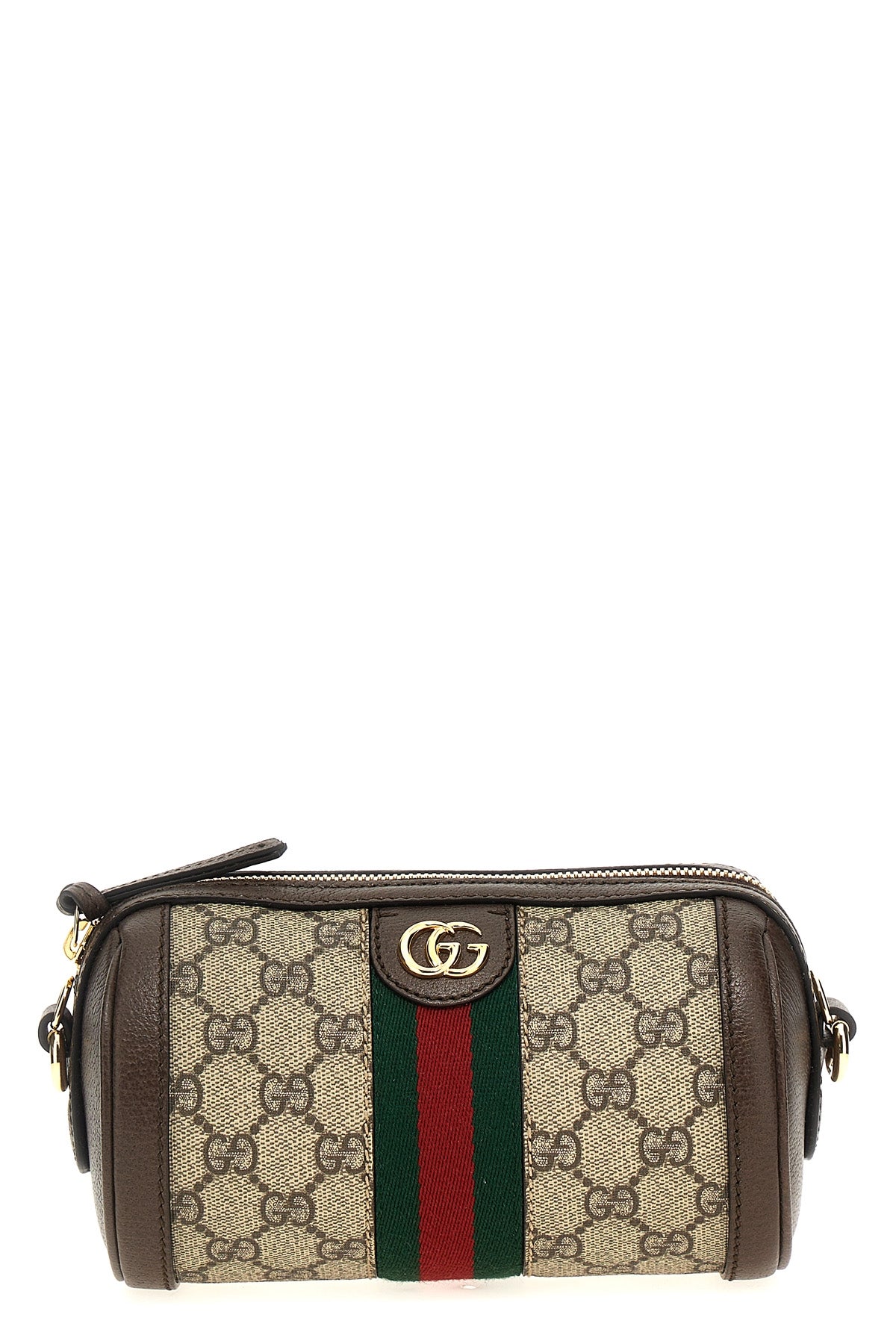 Sac bandoulière Ophidia' Mini en tissu GG Supreme avec détails en cuir, logo métallique sur le devant, ruban Web, fermeture éclair, bandoulière en cuir réglable et amovible, bandoulière chaîne amovible.