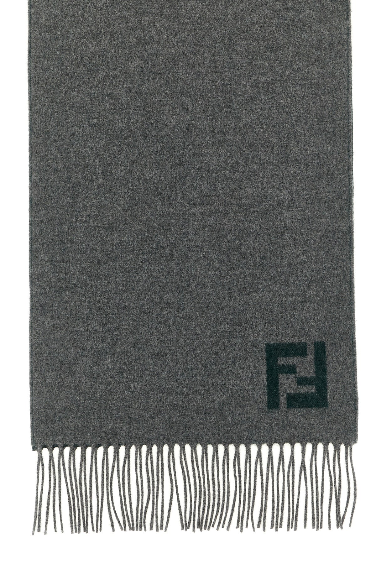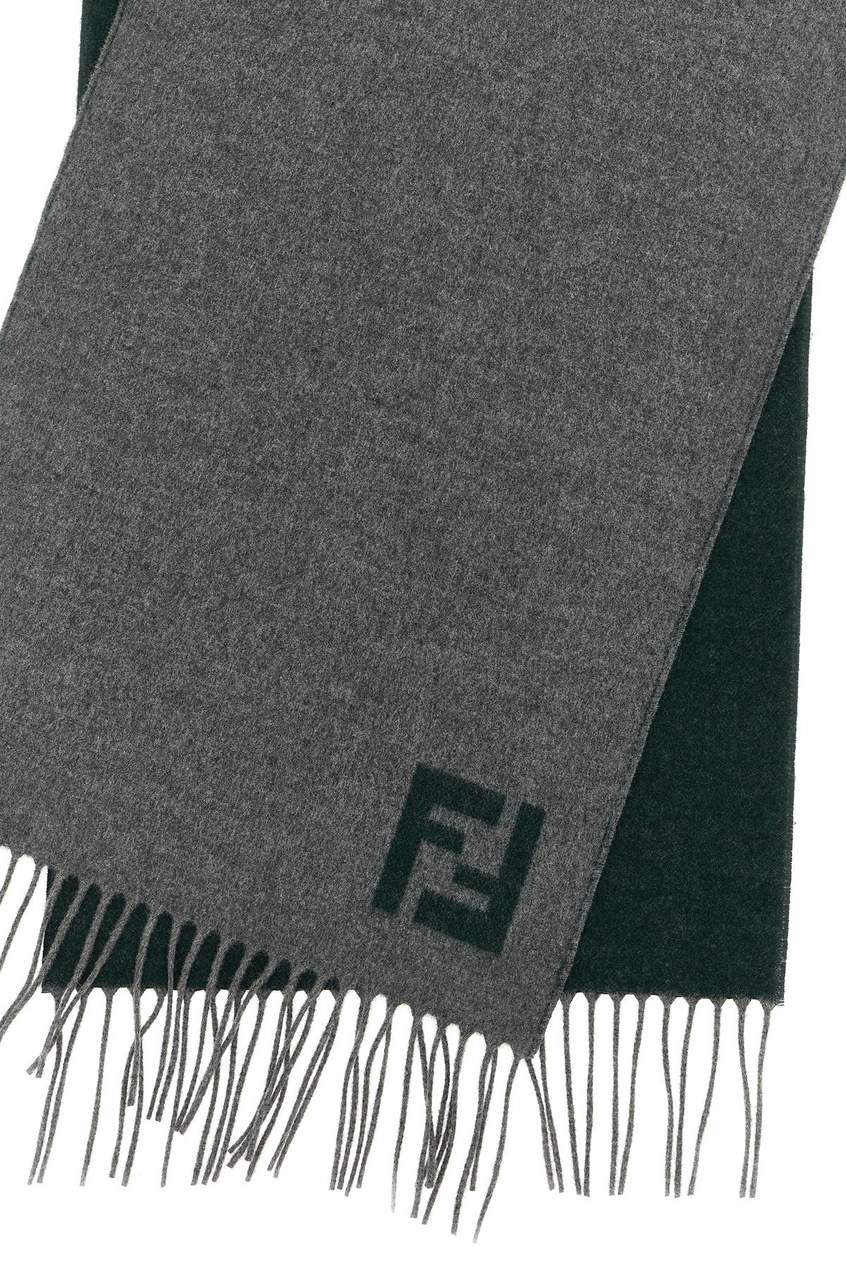 Écharpe double face en laine fine et cachemire avec intarsia et ourlet à franges.