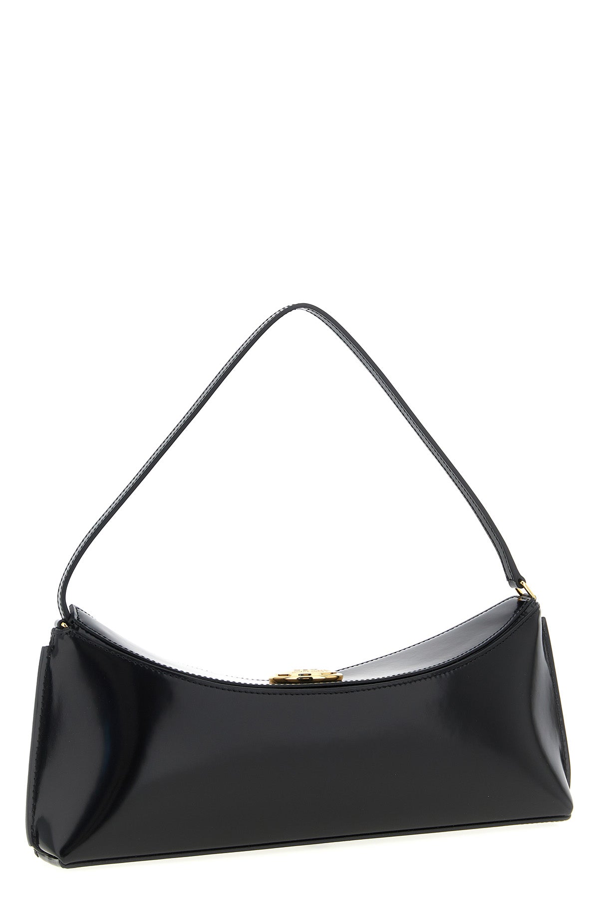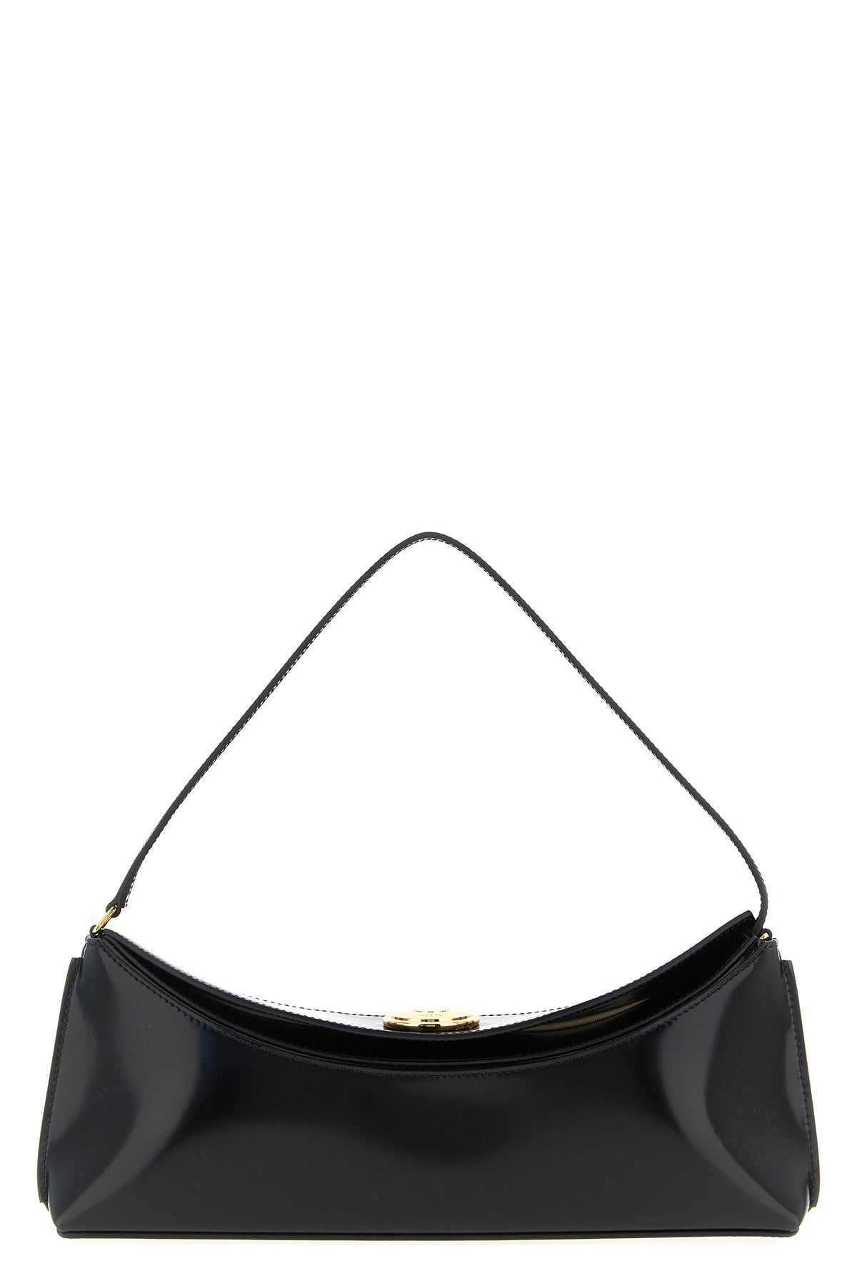Pochette Ovalo en cuir glacé, fermeture à rabat magnétique ornée d'un bouton métallique gravé, anse fixe, doublure en coton.