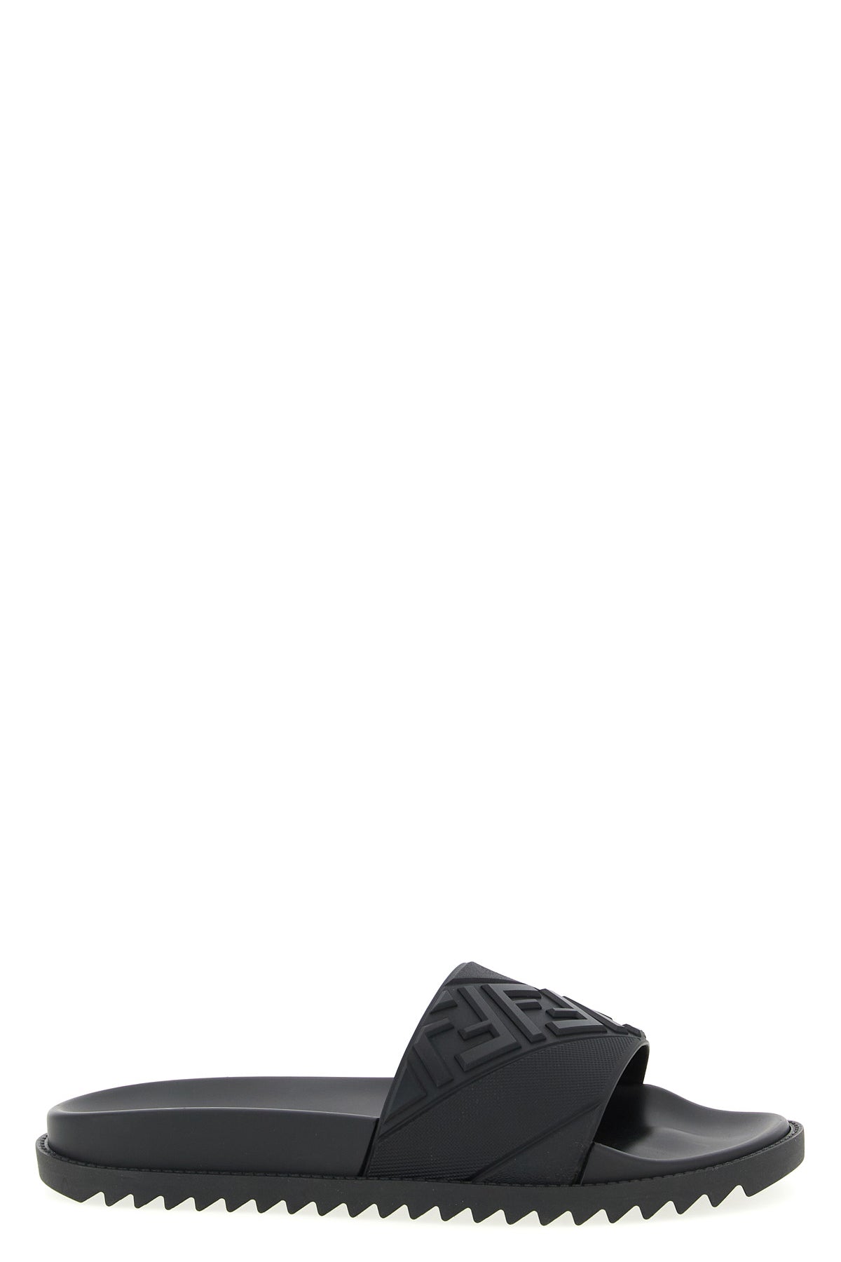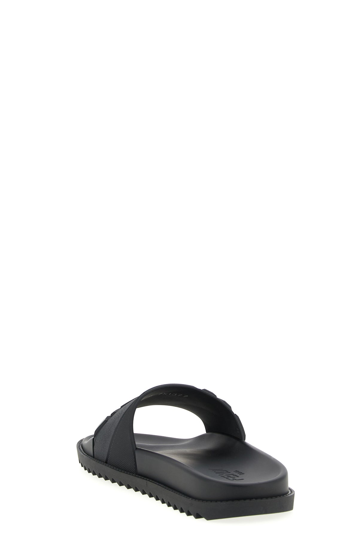 Sandales plates en caoutchouc noir Diagonal Ff’ avec logo sur la bride.
