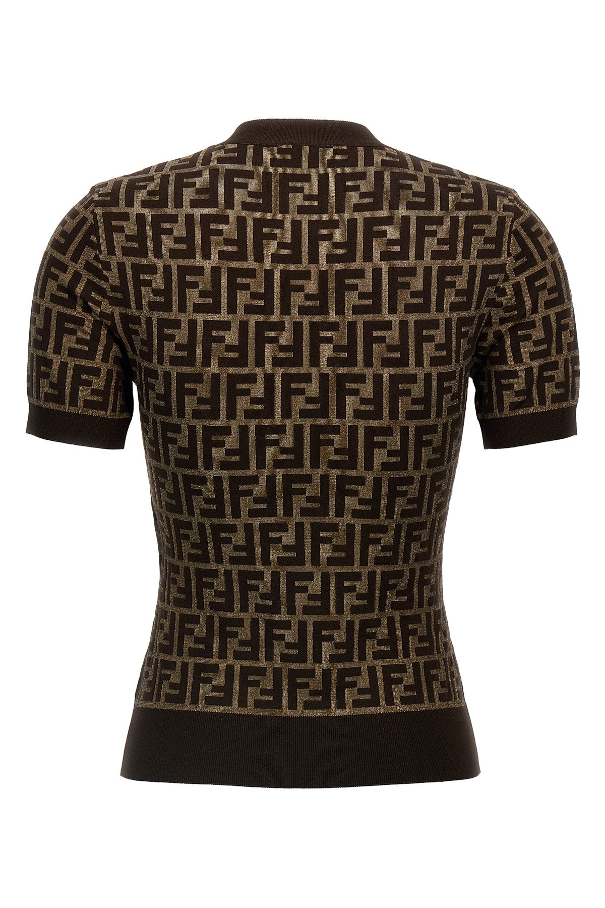 Pull en coton jacquard à motif ' Ff ' intégral, col rond et manches courtes.