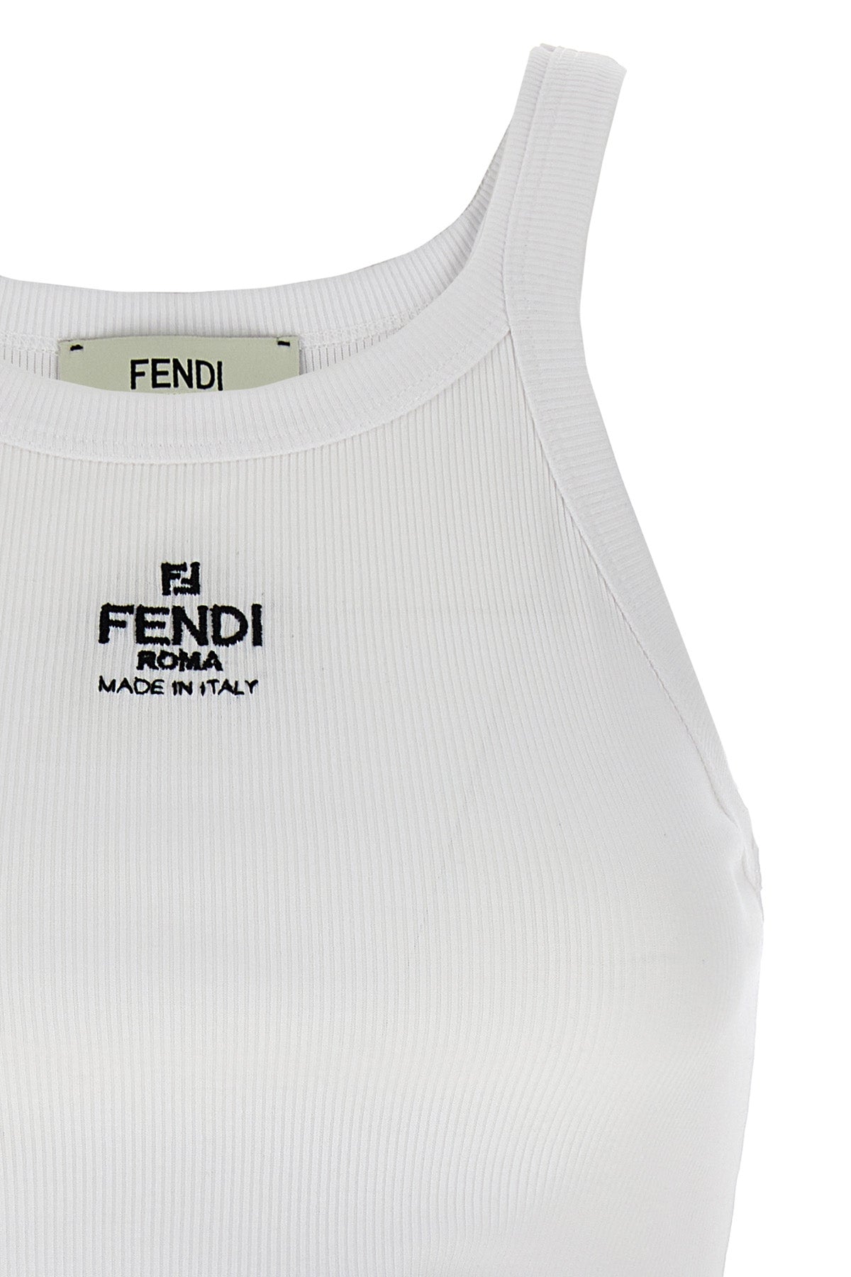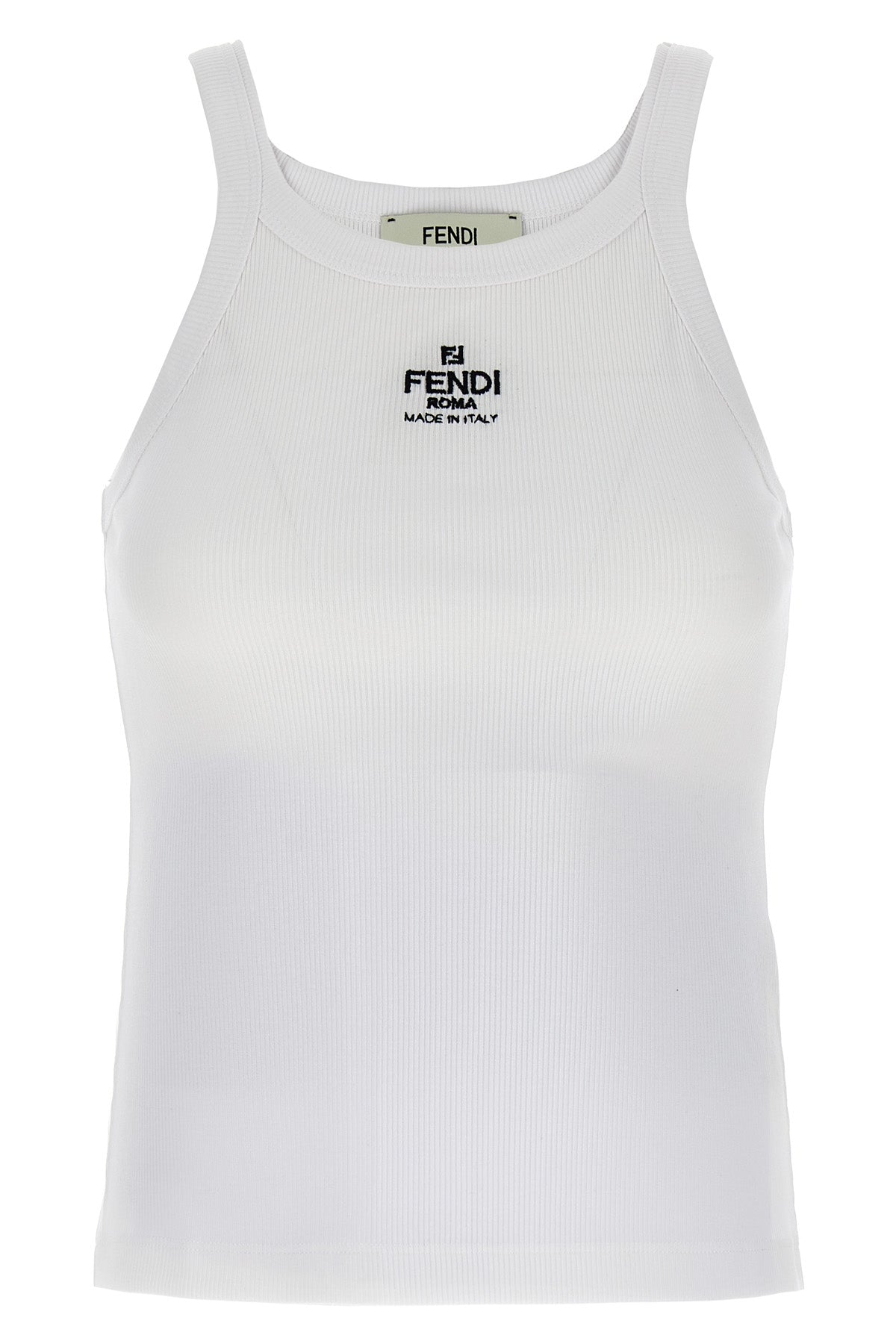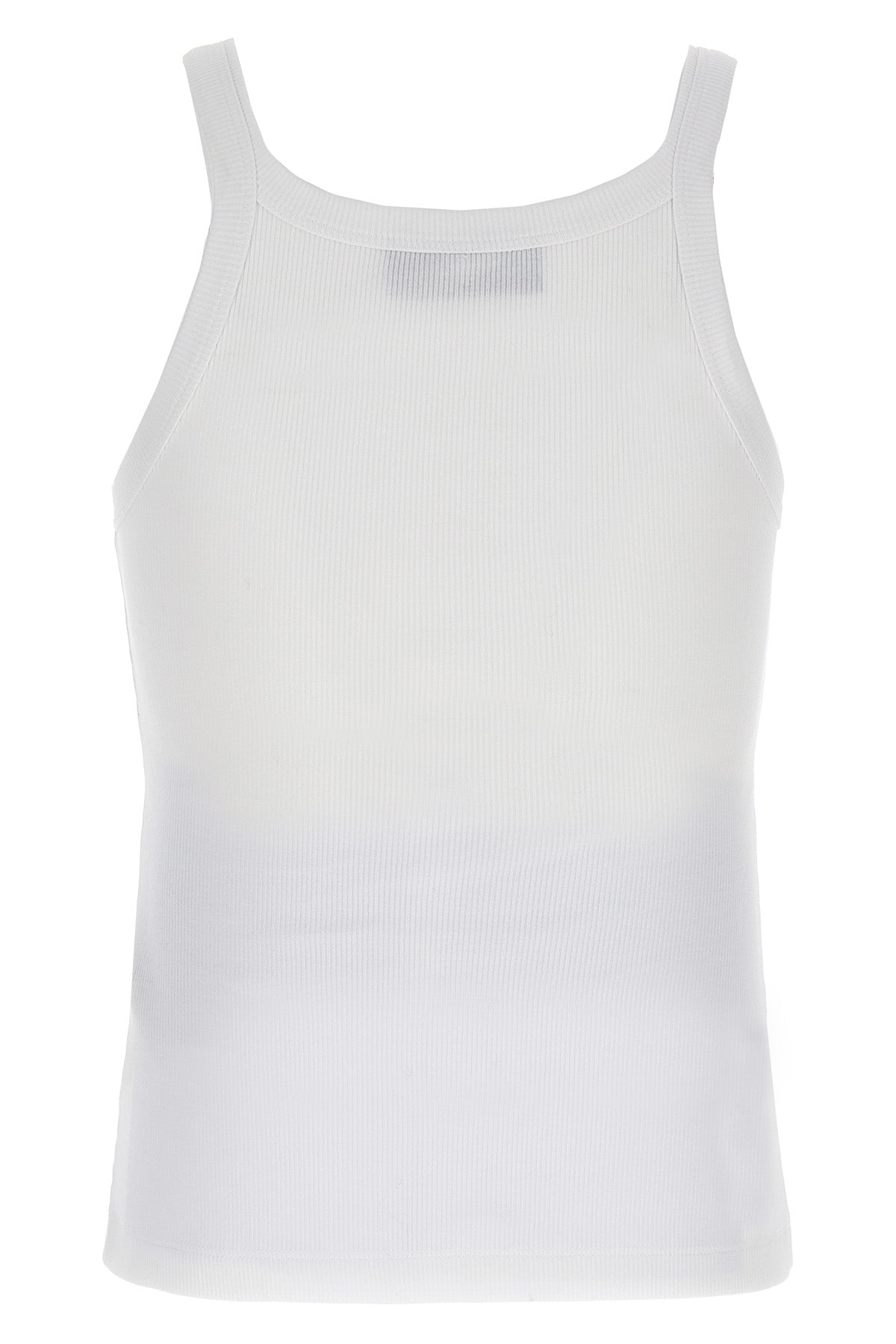 Haut Canotta En Cotone Garzato Avec Logo Ricamato Frontale.
