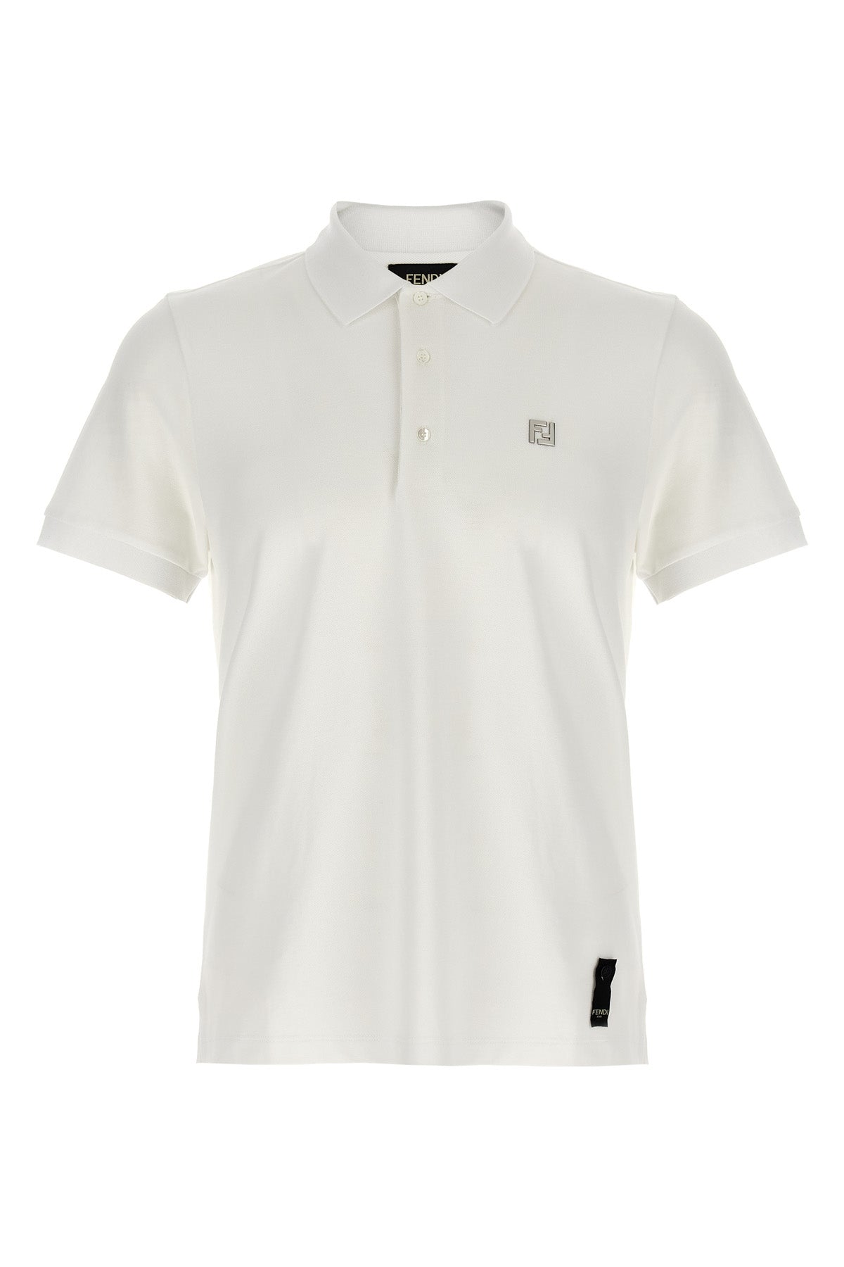 Polo en piqué de coton, logo FF en métal sur le devant, col et boutons, manches courtes, fentes latérales.