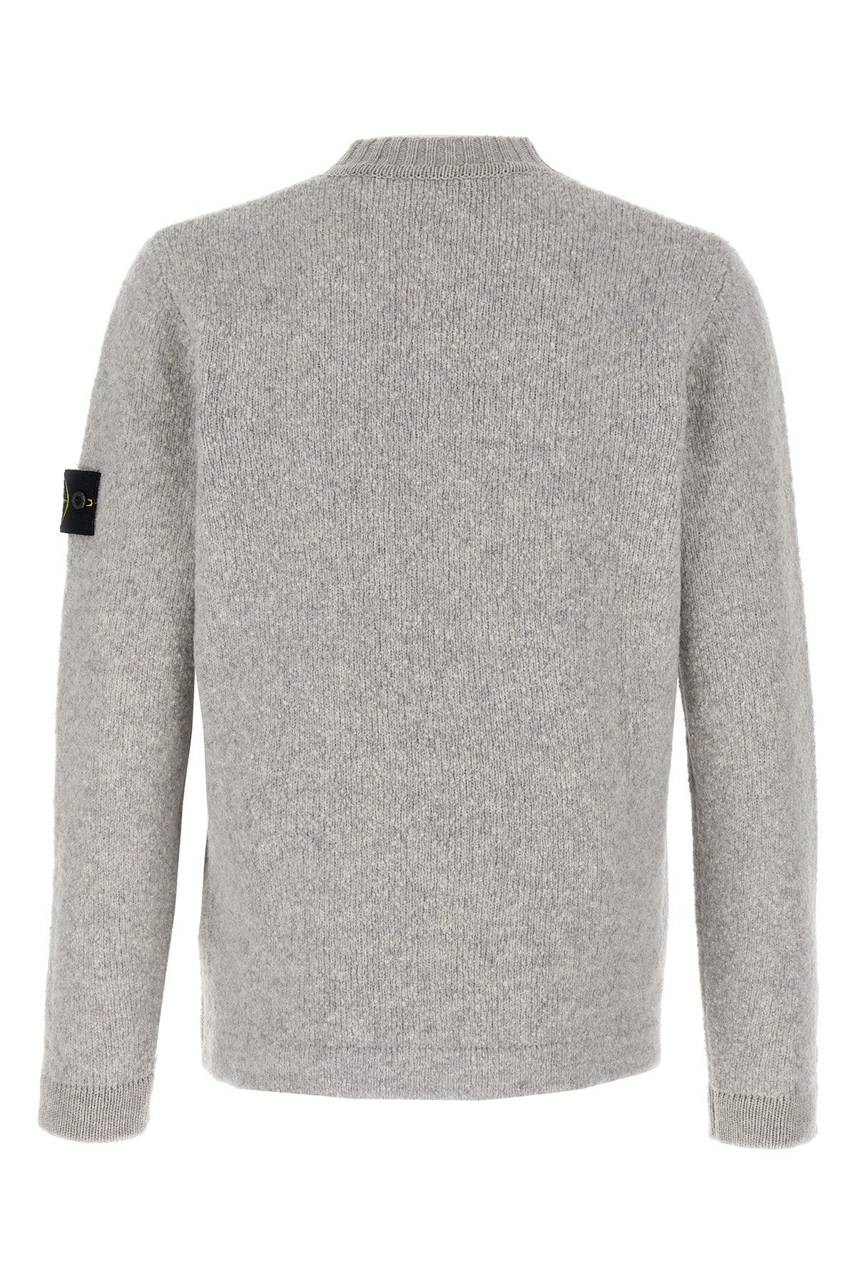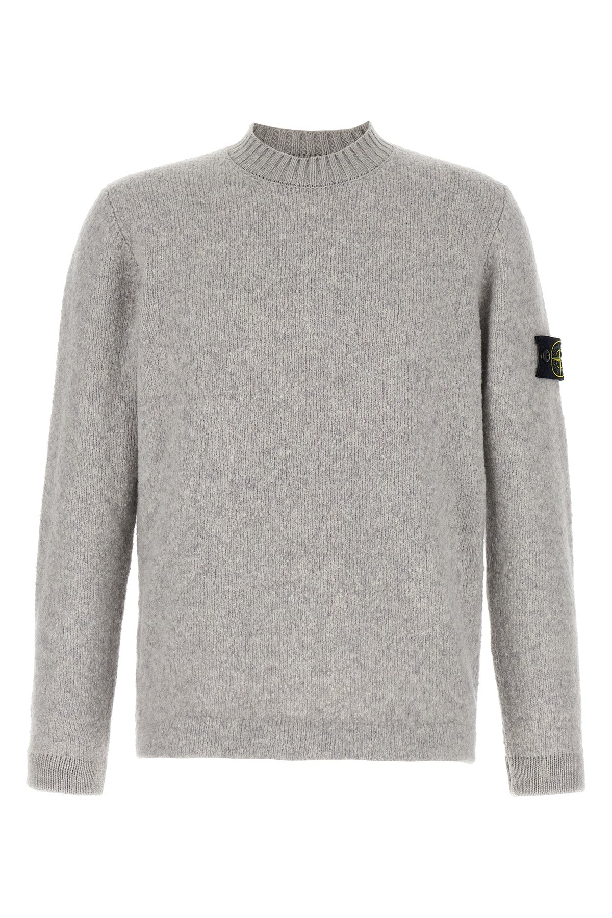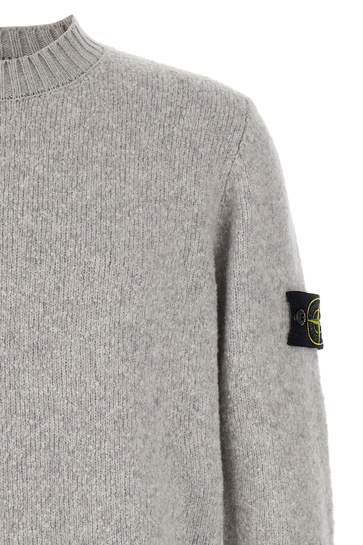 Pull en laine mélangée bouclée, col rond, manches longues à poignets boutonnés et écusson logo.