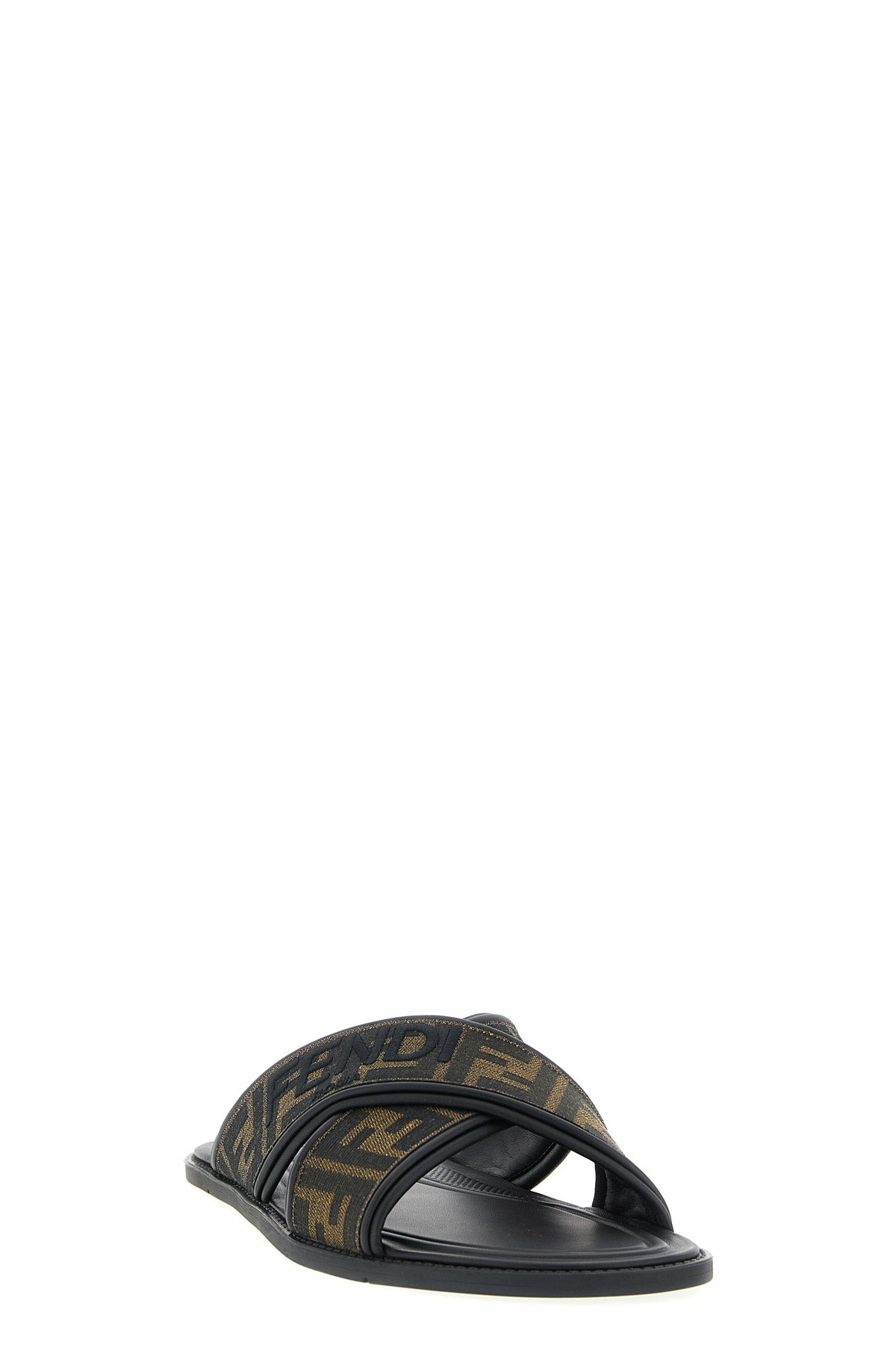Sandales à logo avec double bride croisée, logo 'Ff' jacquard et broderie contrastée 'Fendi Roma'.