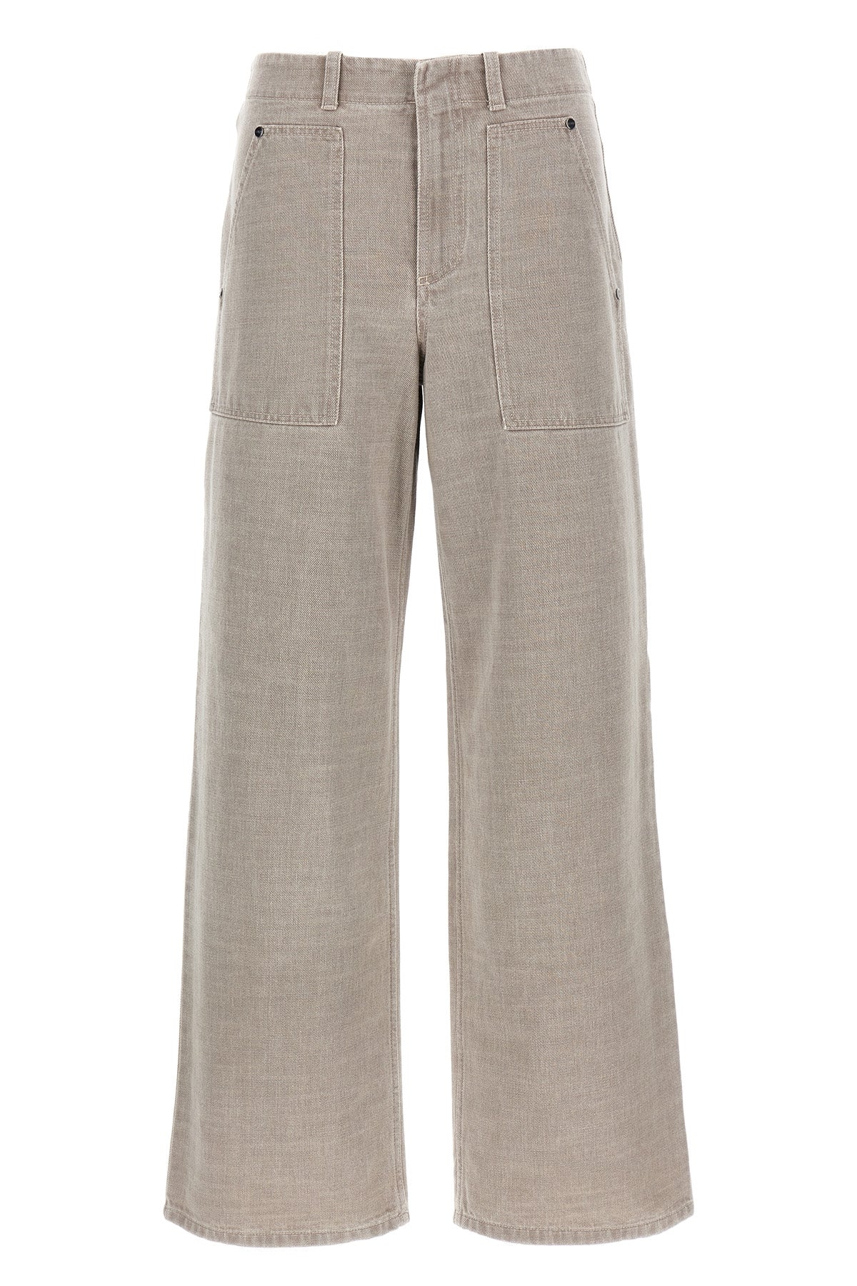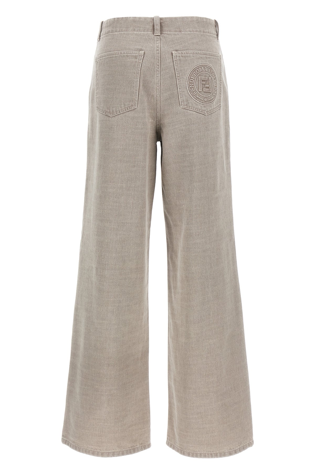 Jean en denim de coton ' Go-To ' avec imprimé ' Fendi Stamp 1925 ' en relief au dos, modèle taille mi-haute, fermeture éclair à crochet et bouton, poches, jambes larges.