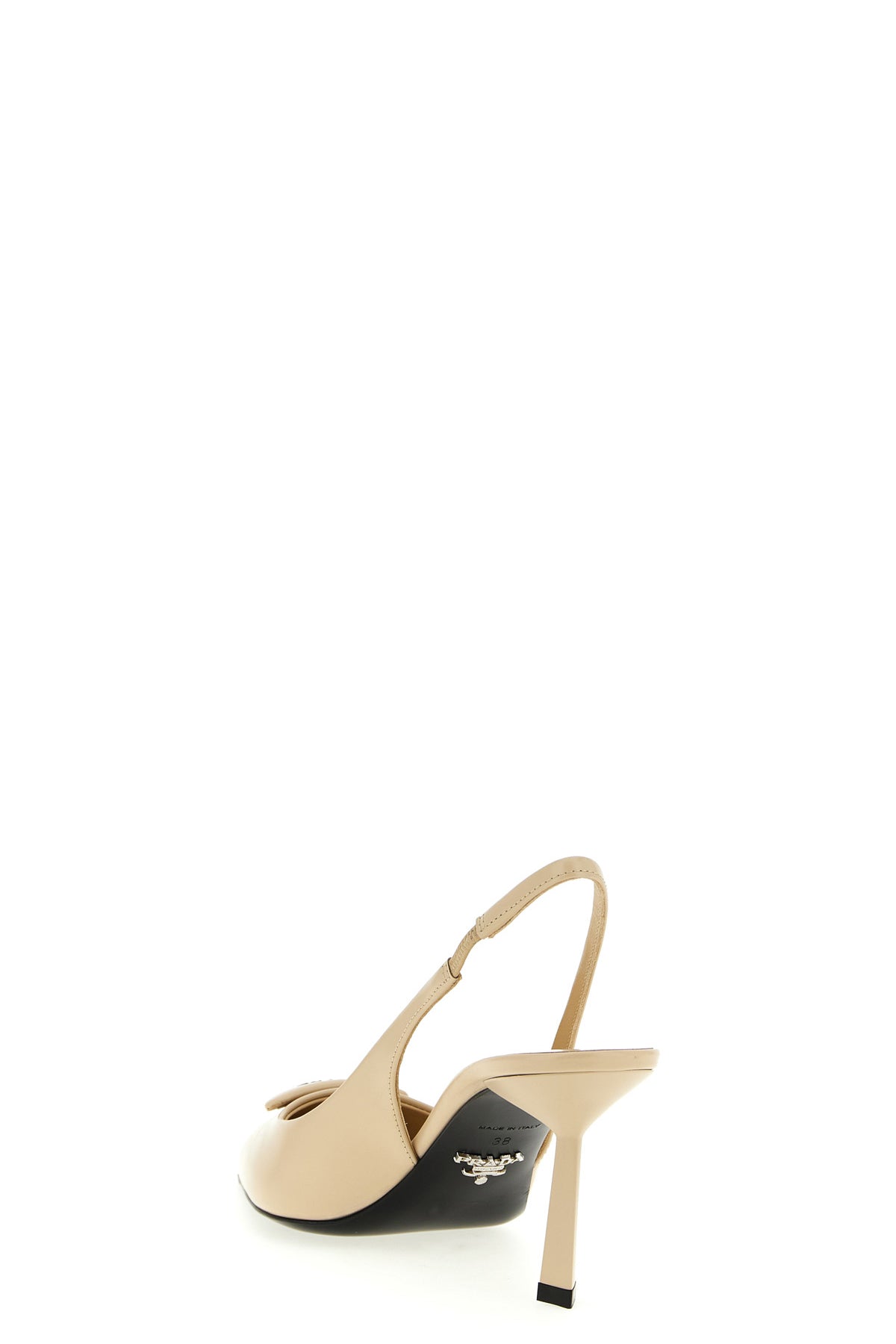 Escarpins en cuir avec logo triangulaire en cuir sur le devant, bride élastique, talon sculptural.