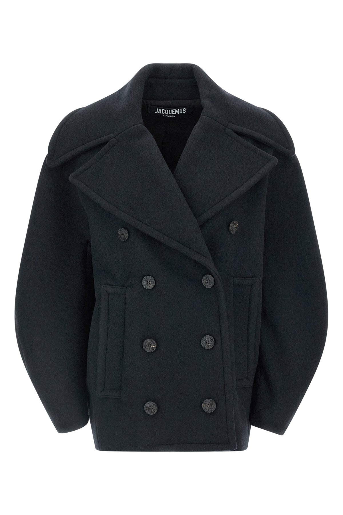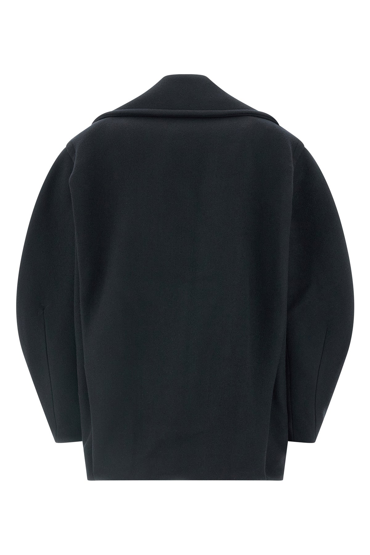 Manteau Le Caban Ovalo' en laine vierge avec doublure en mélange de viscose et de coton, style croisé avec fermeture à boutons sur le devant, coupe arrondie sur le haut, poches, manches longues incurvées avec épaules tombantes, soufflets au dos.