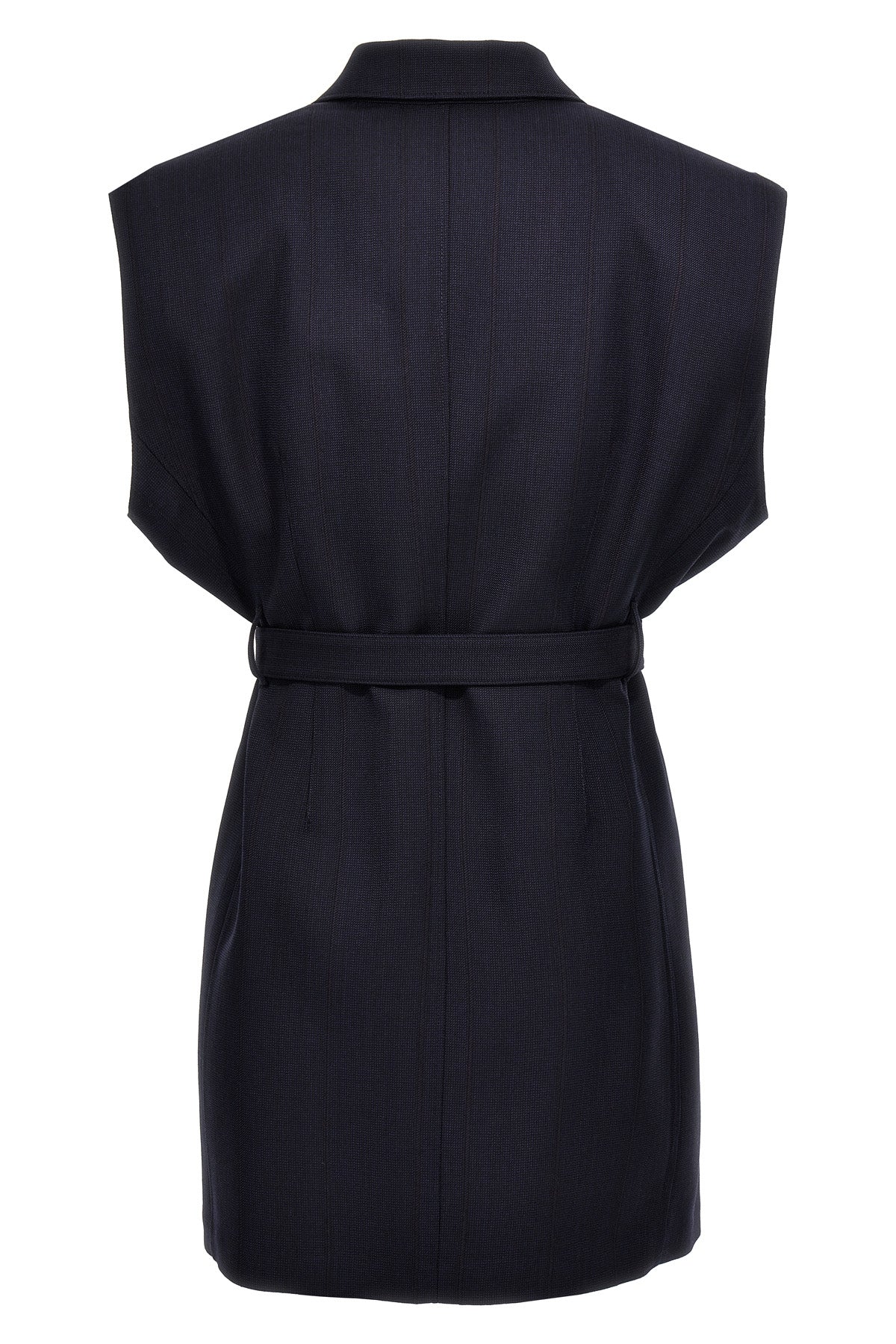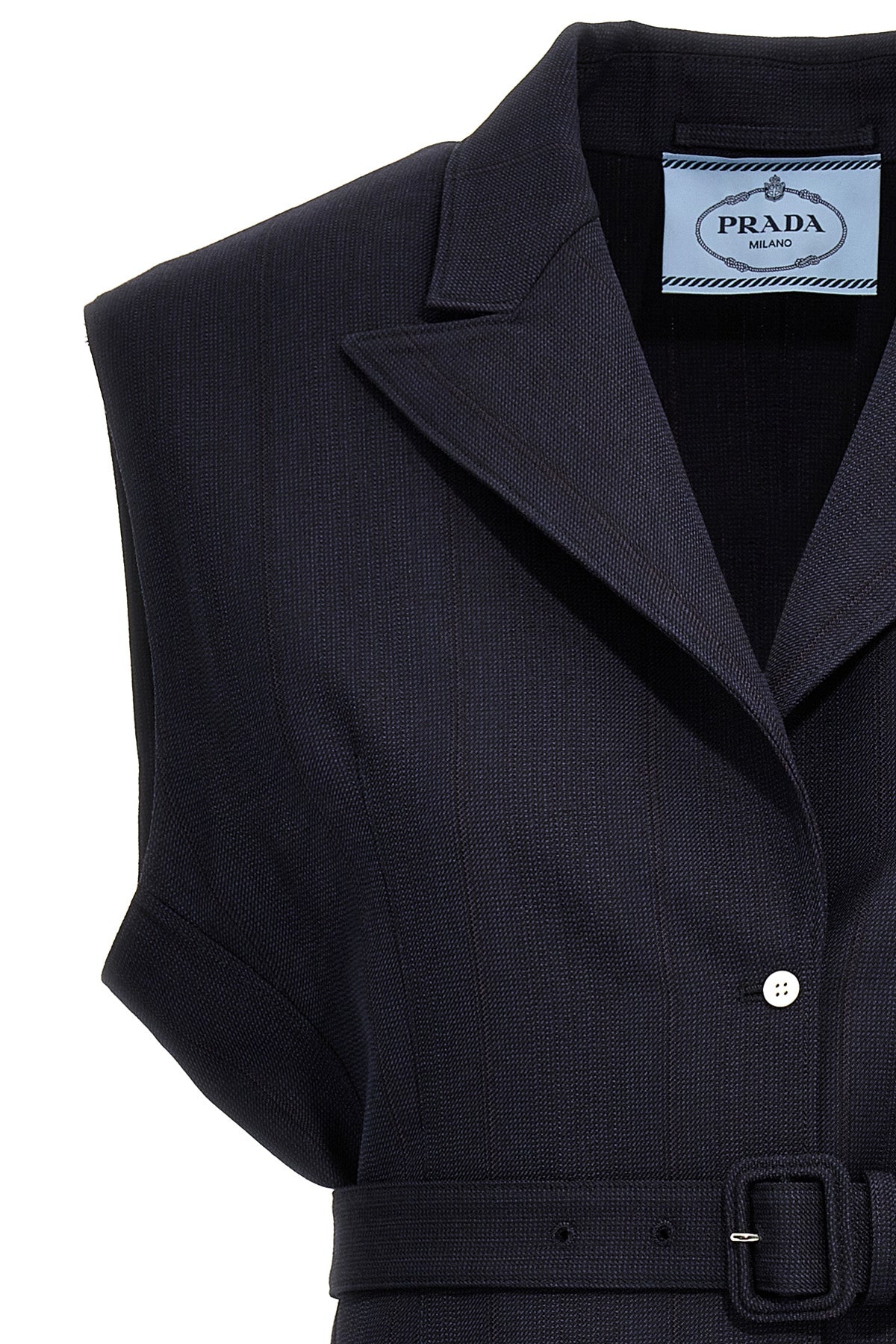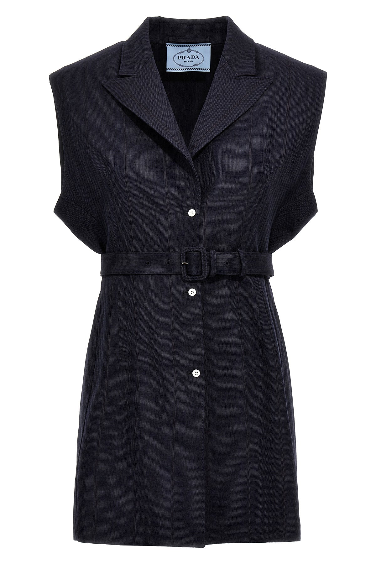 Gilet en laine avec fermeture à boutons, ceinture à la taille et épaules rembourrées.