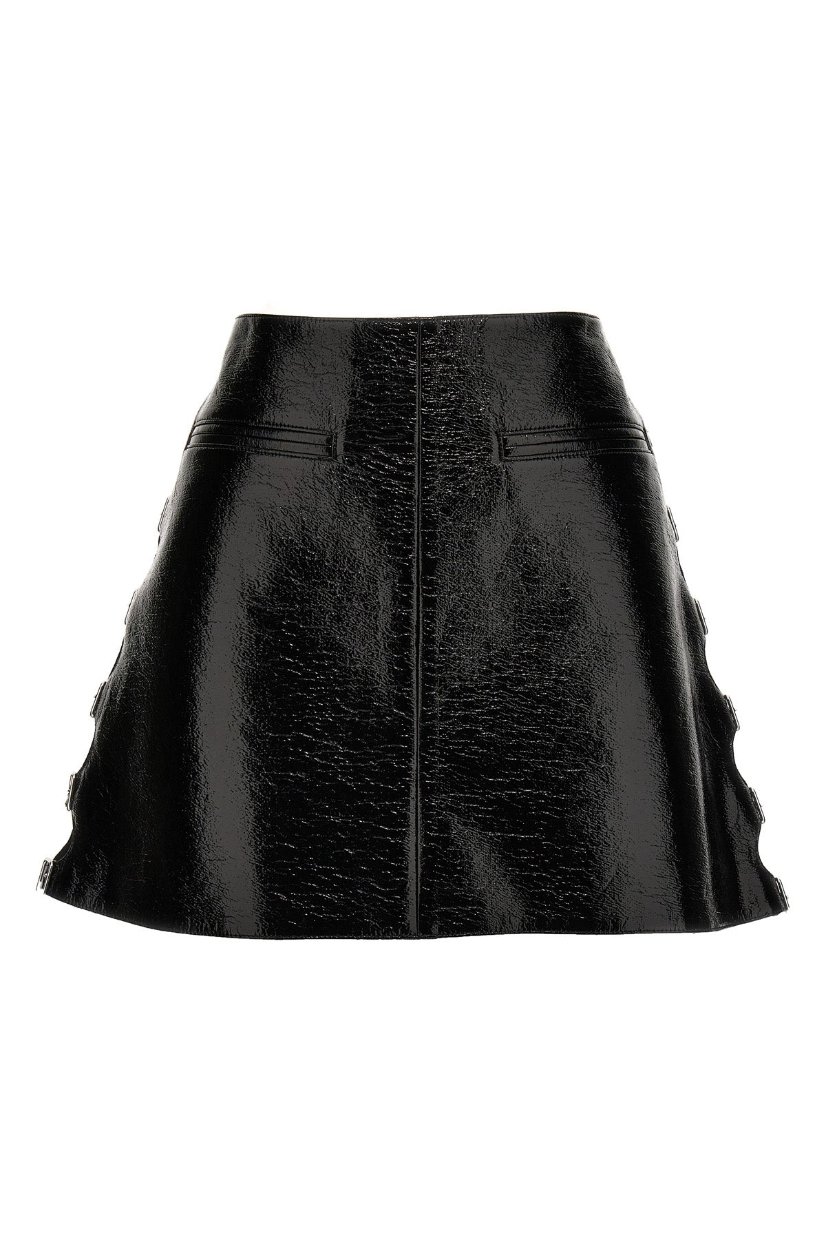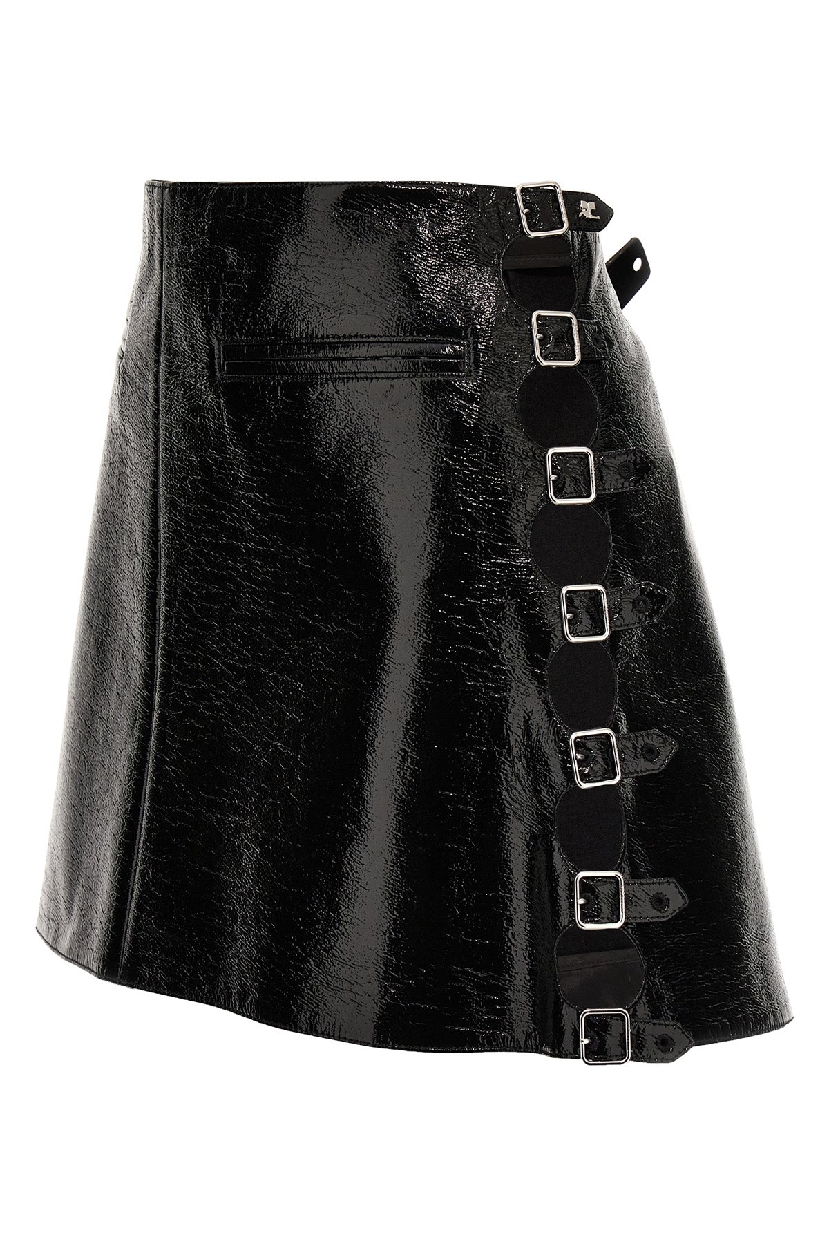 Mini-jupe en vinyle avec poches avant et bretelles réglables aux hanches.