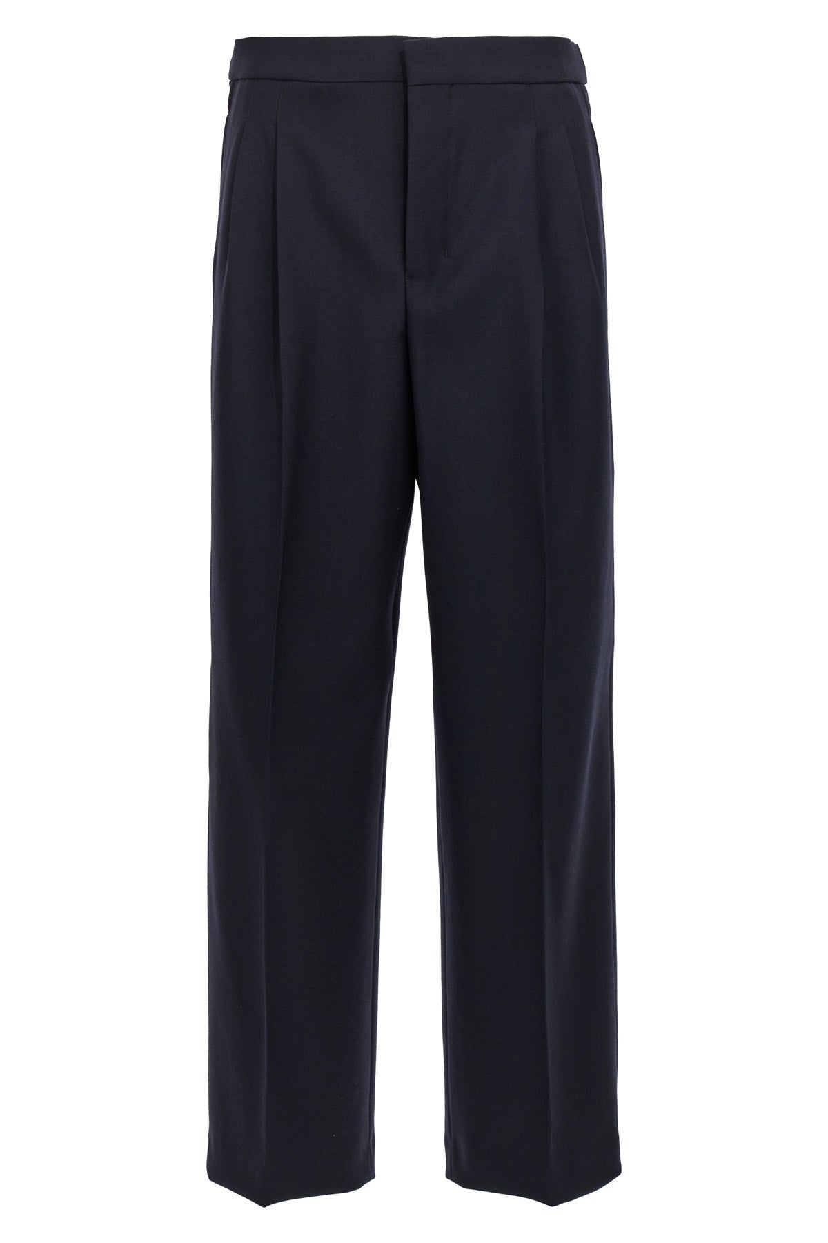 Pantalon en laine avec pli marqué et repassé, fermeture boutonnée, poches.