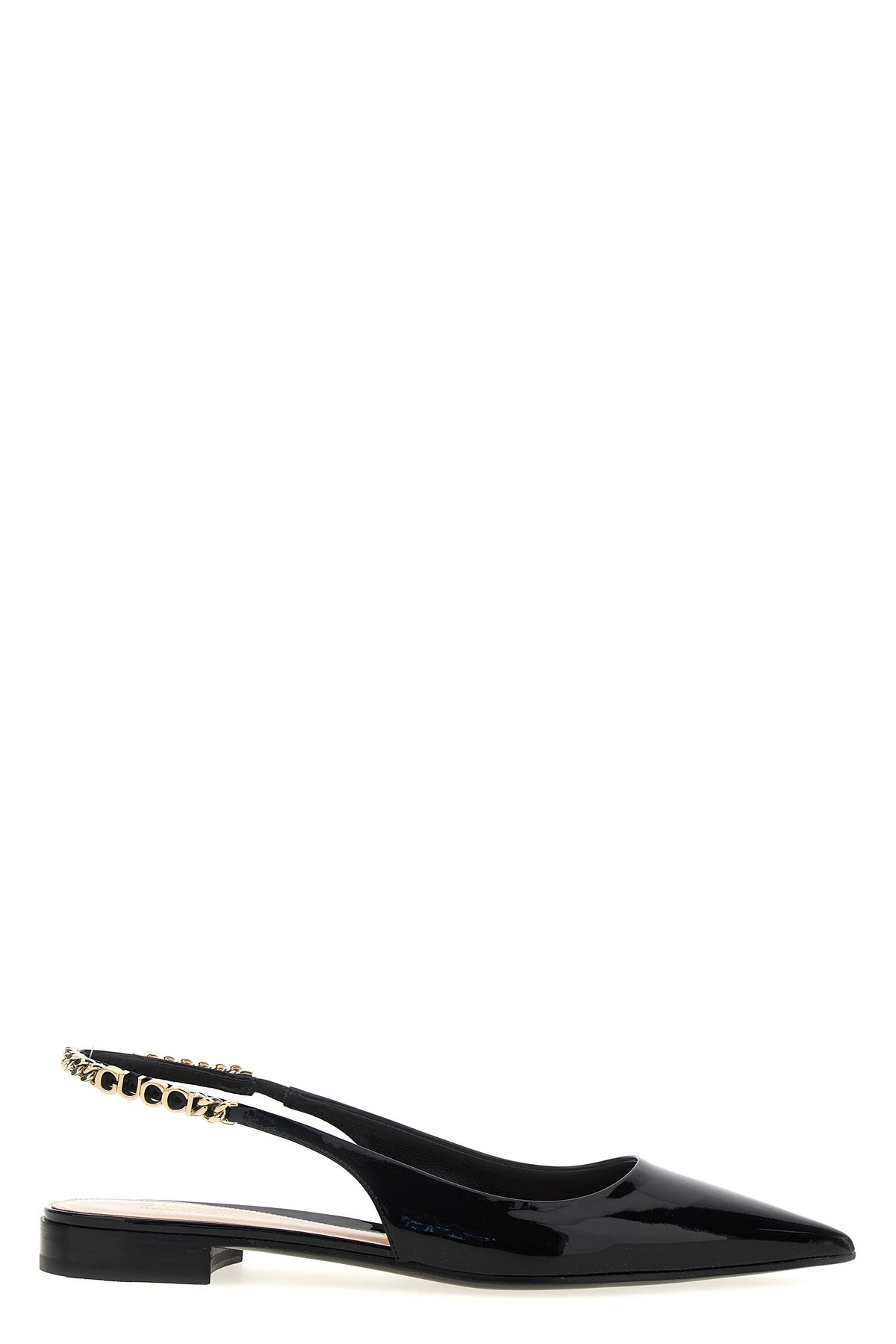 Ballerines Signoria en cuir verni avec bride élastique et logo en métal, semelle en cuir.