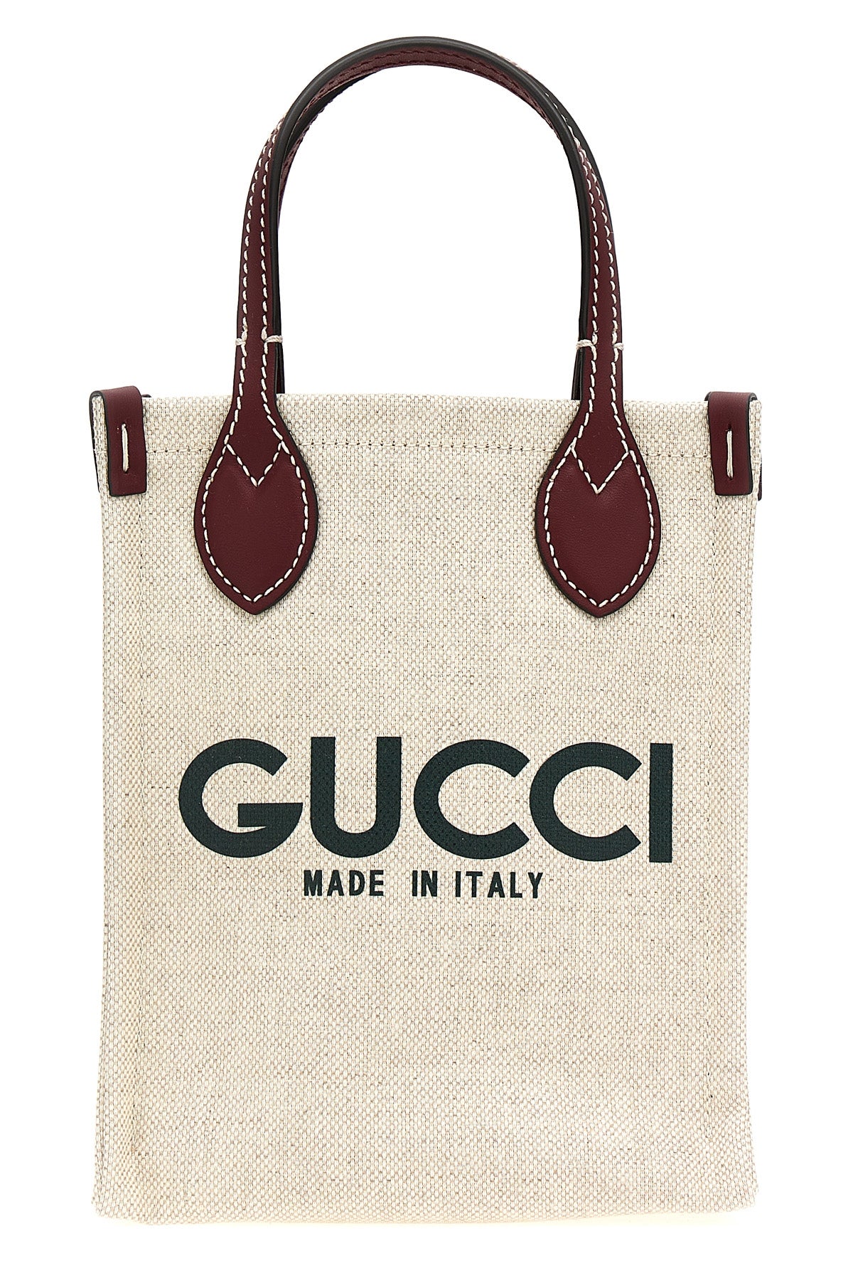 Sac à main Gucci en toile avec logo imprimé sur le devant, détails en cuir, double poignée, bandoulière en cuir réglable et amovible.