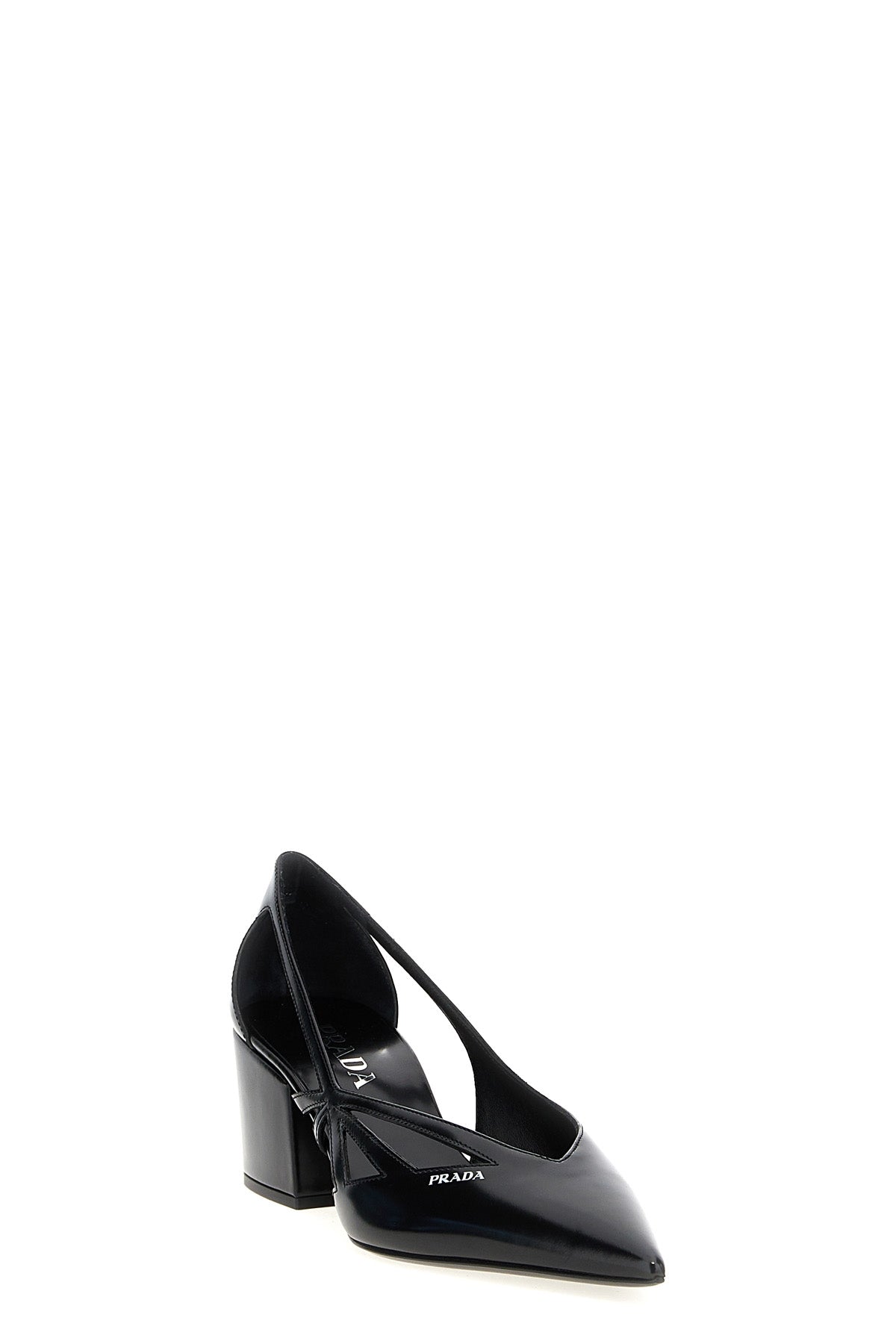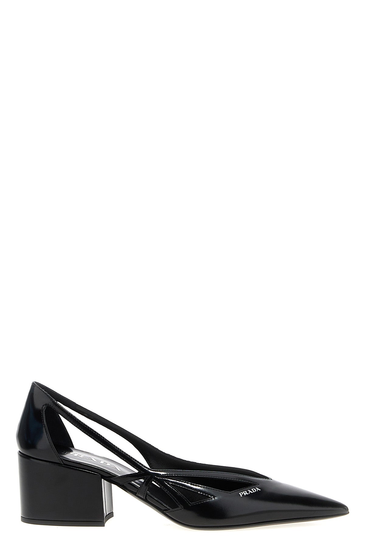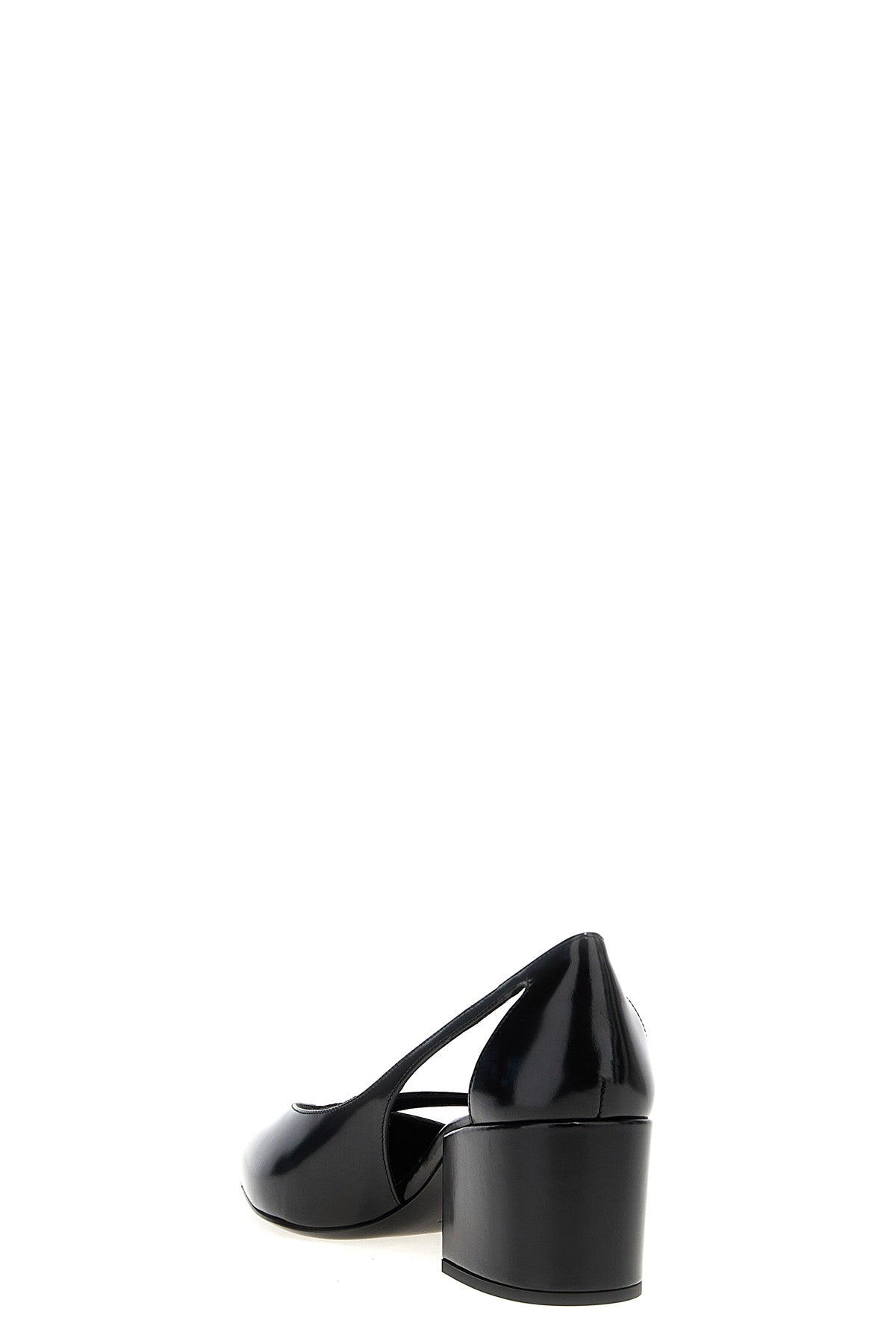 Escarpins en cuir brossé avec détails ajourés, logo sérigraphié, talons larges.