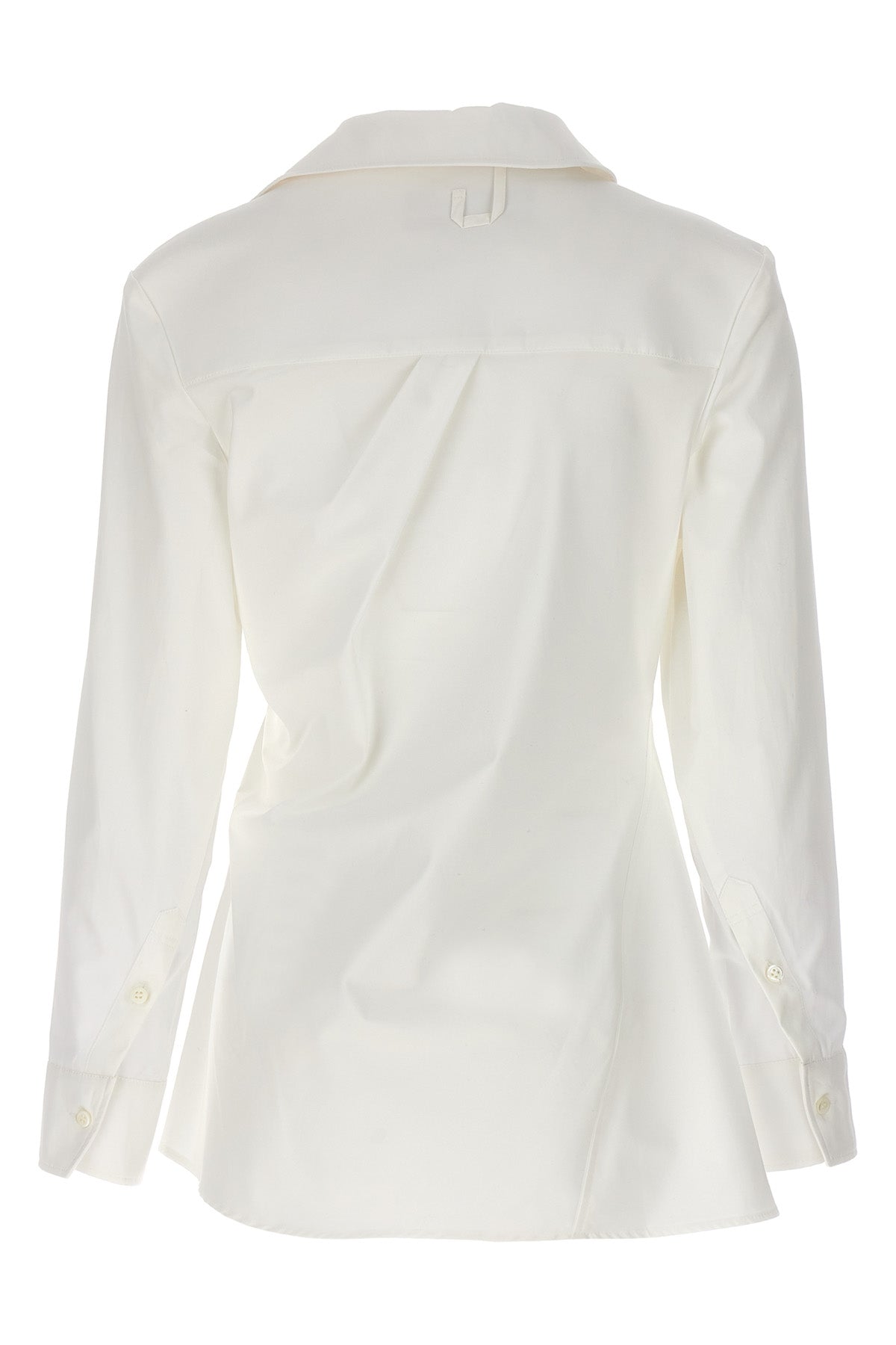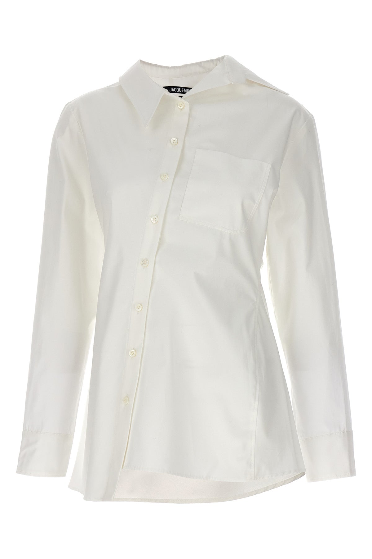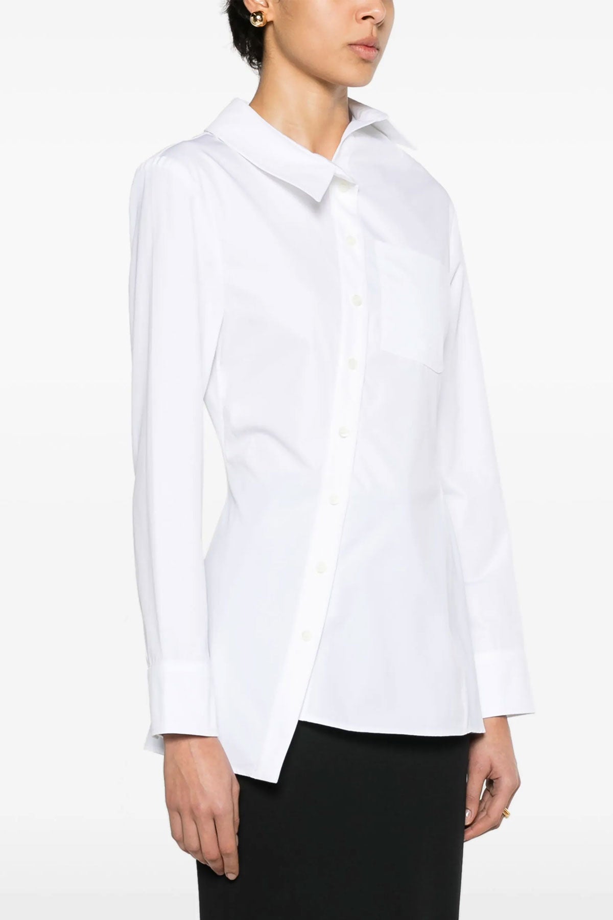 Chemise Pablo', chemise asymétrique en coton avec fermeture boutonnée, poche avant et manches longues à revers.