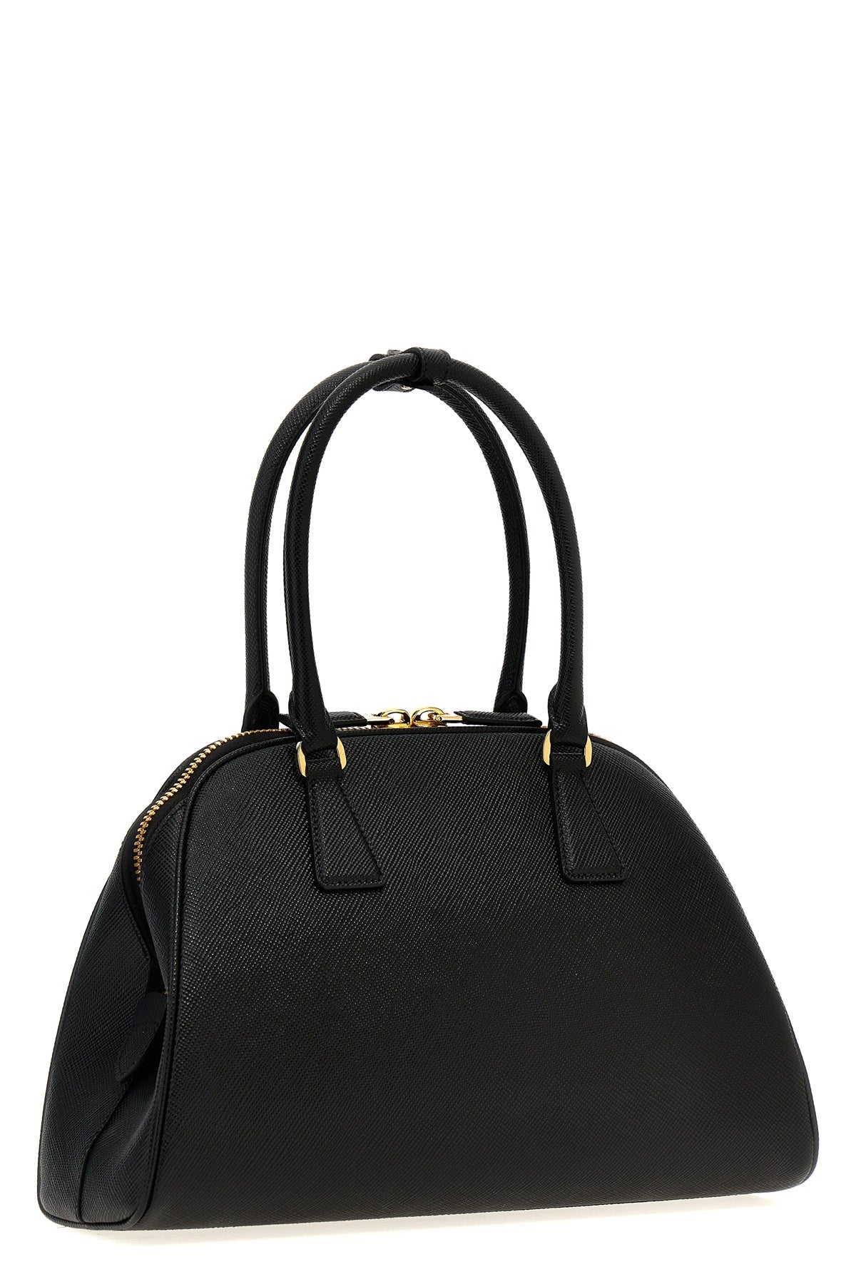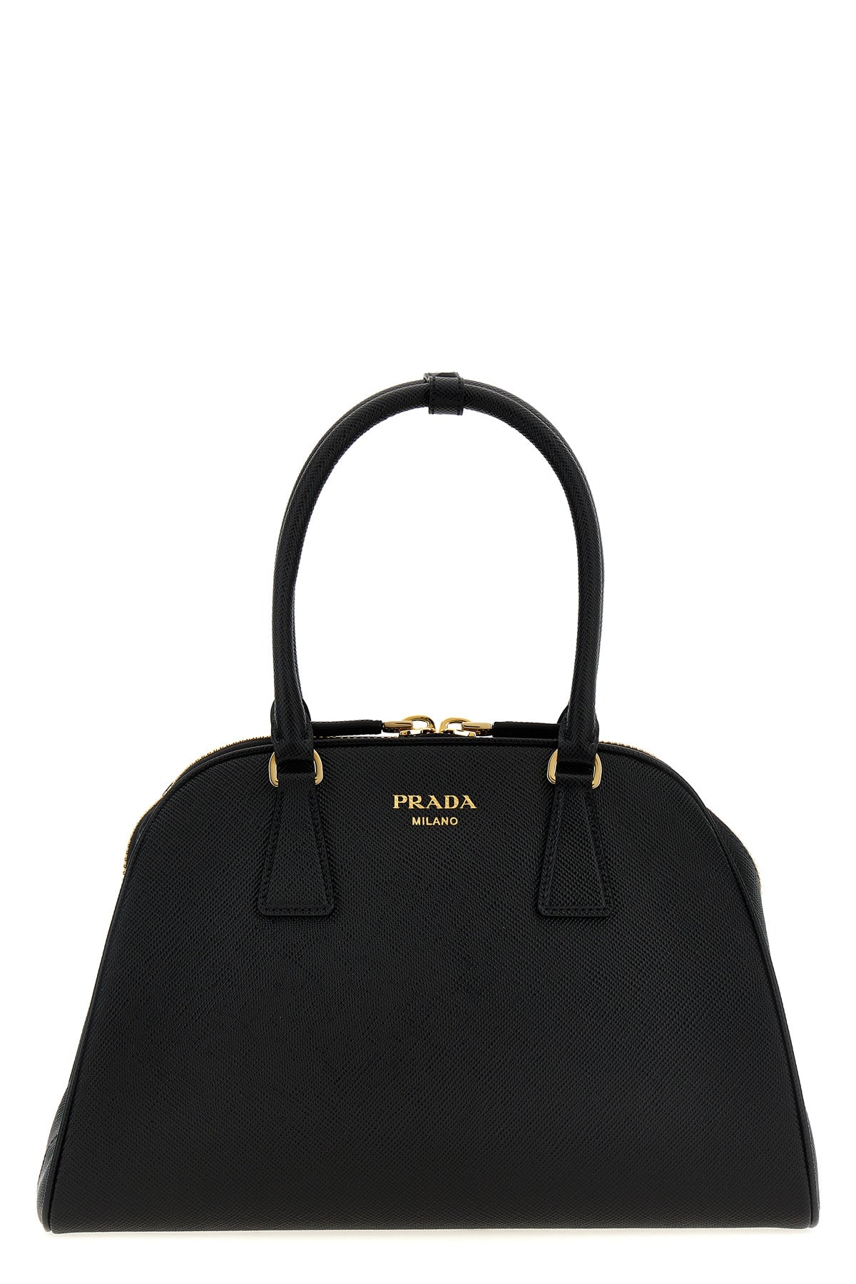 Sac à main midi en cuir Saffiano avec logo imprimé sur le devant, fermeture éclair et double anse.