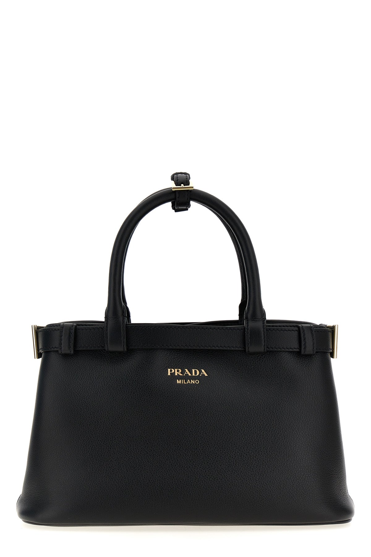 Sac à main Prada Buckle Small en cuir avec logo embossé sur le devant, double anse et double ceinture.