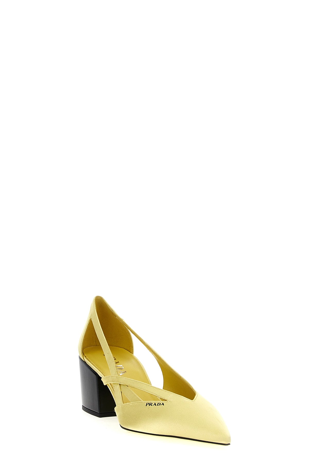 Escarpins en satin avec détails ajourés, logo sérigraphié, talons larges.
