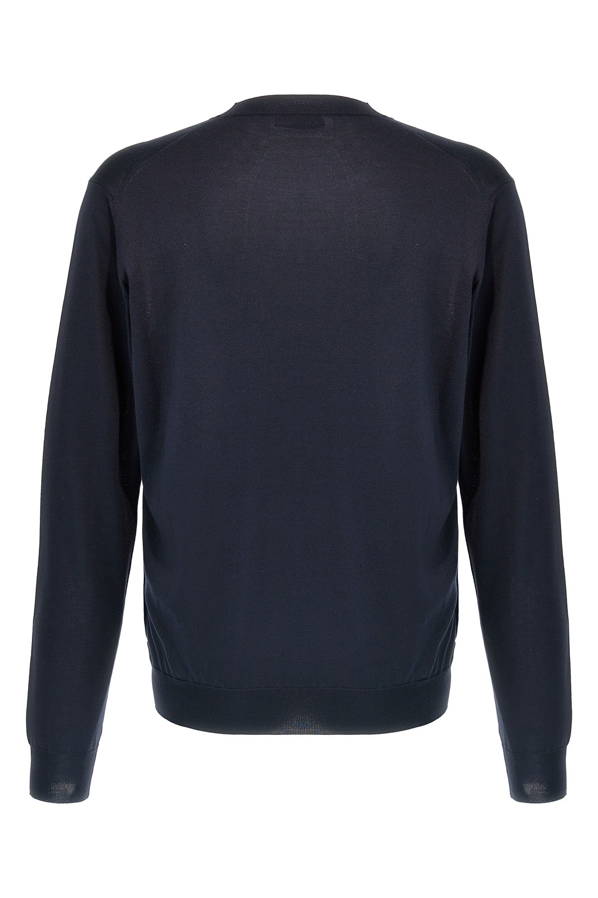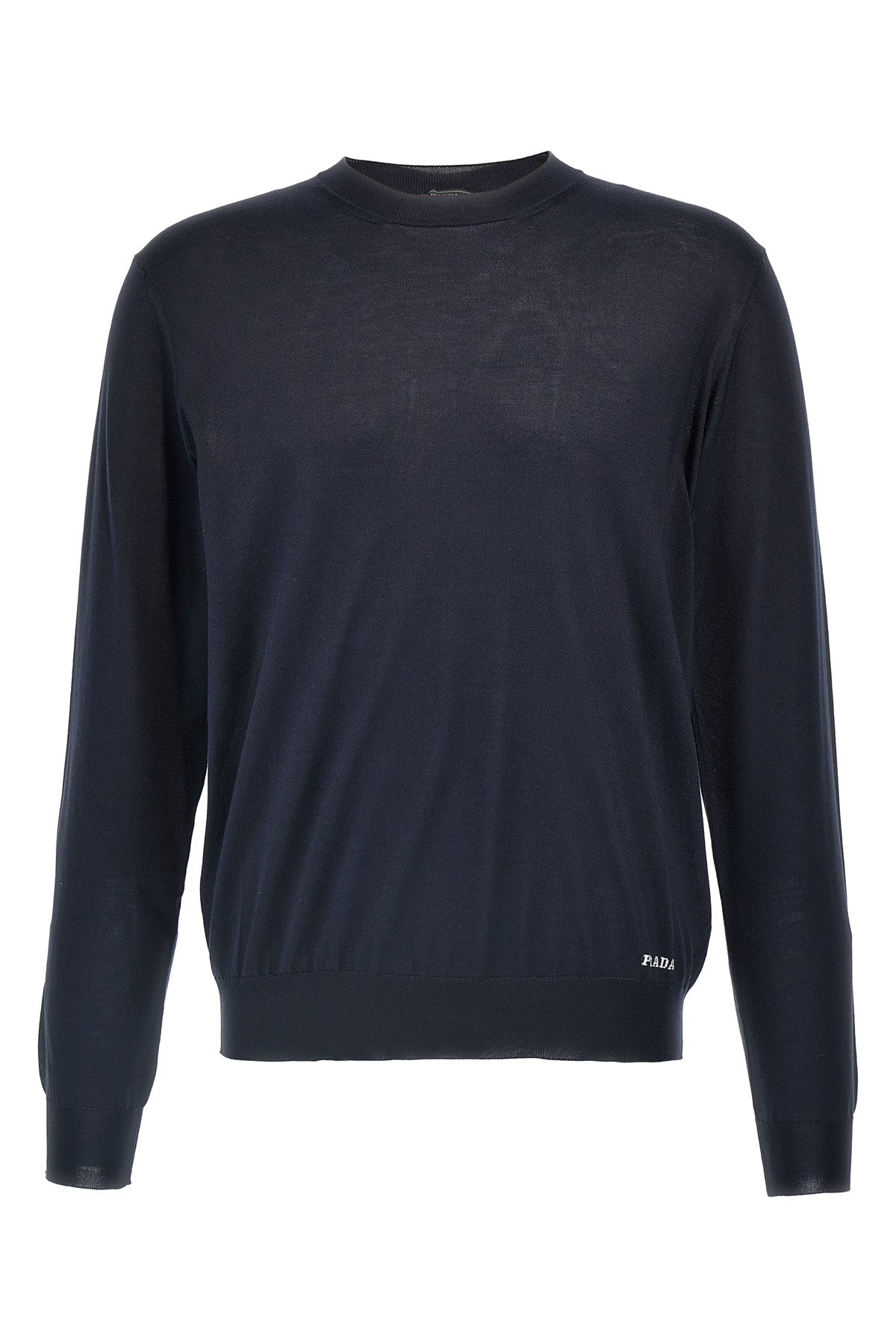 Pull en soie, logo brodé contrastant sur le devant, col rond, manches longues à poignets boutonnés.