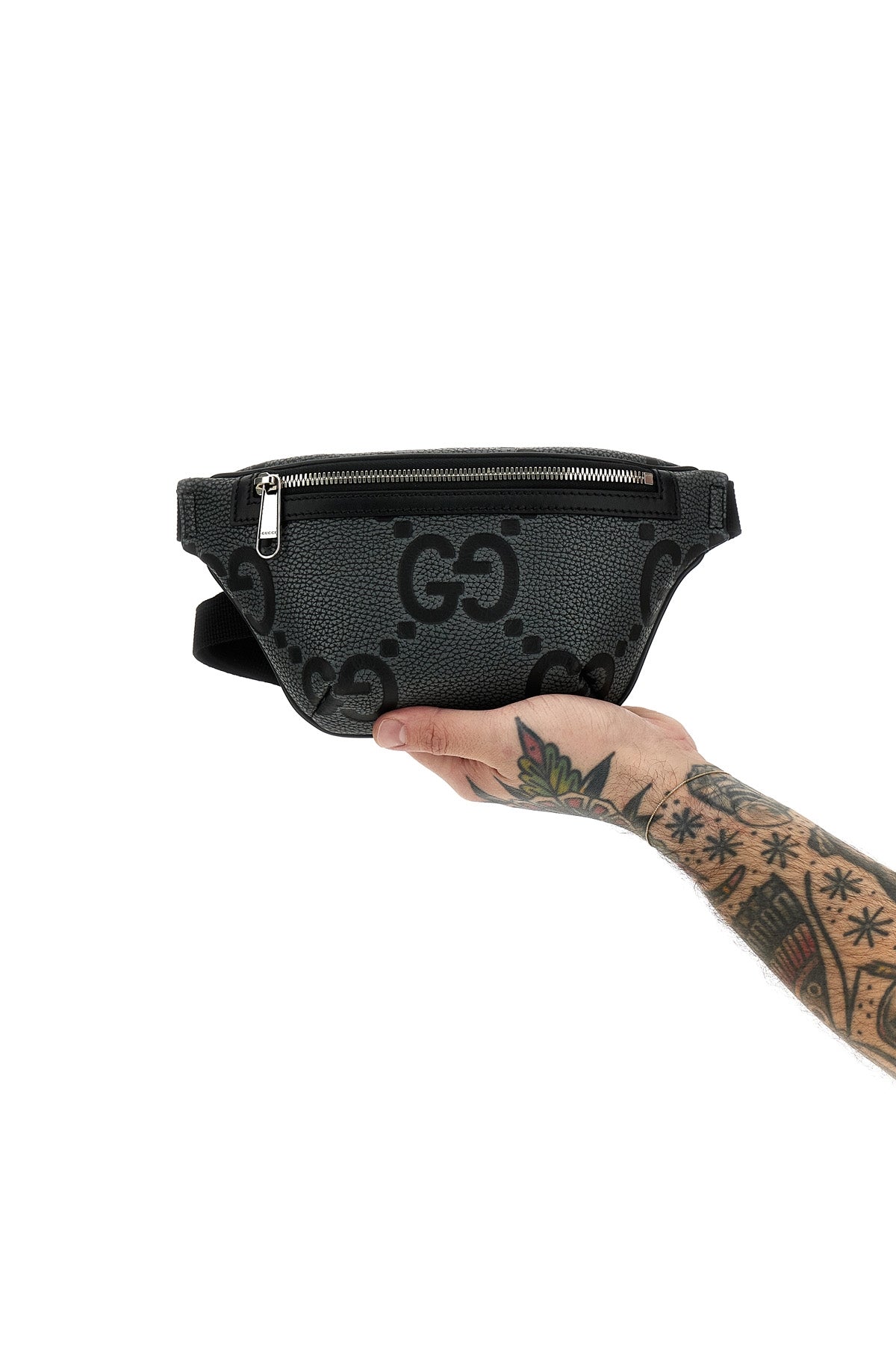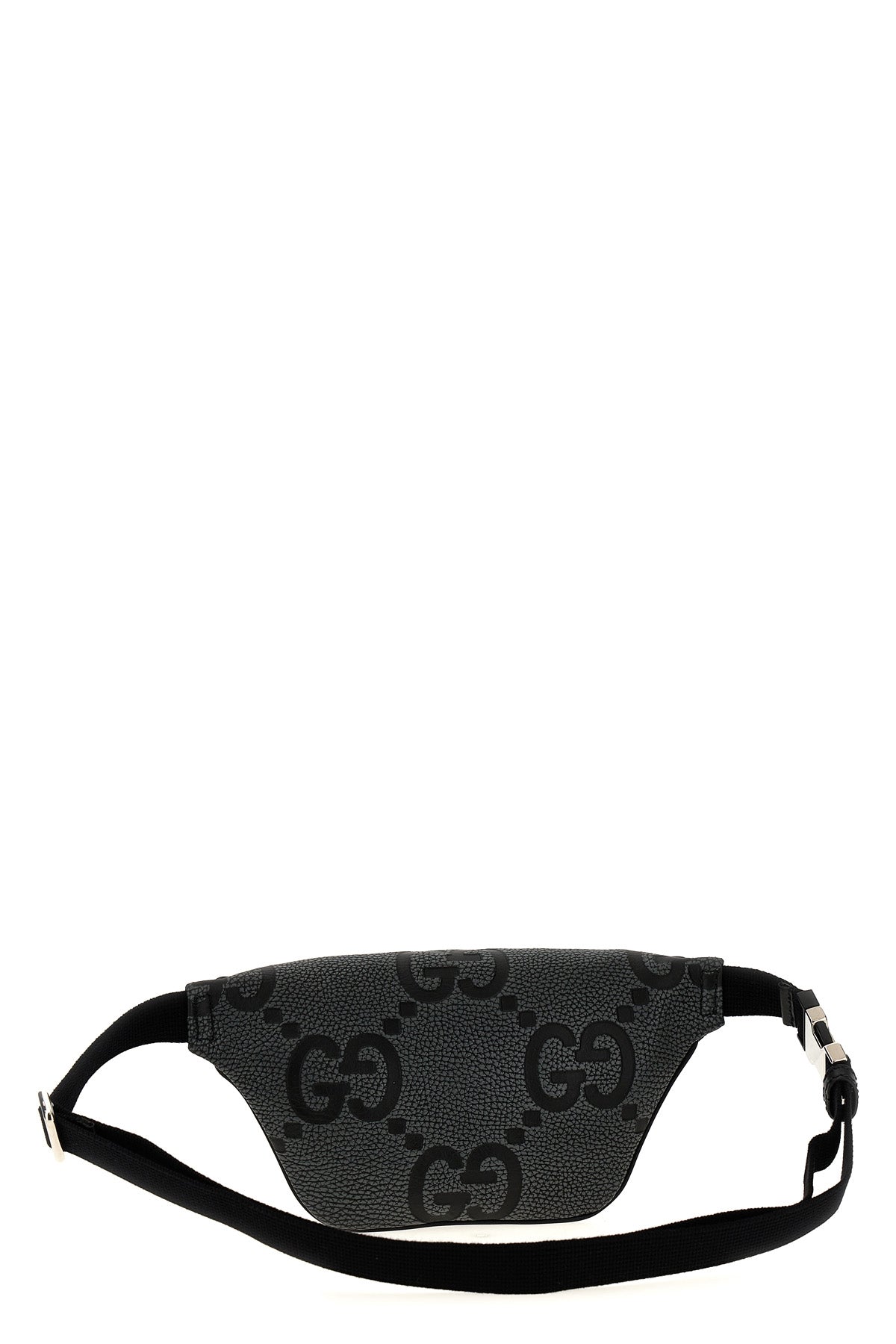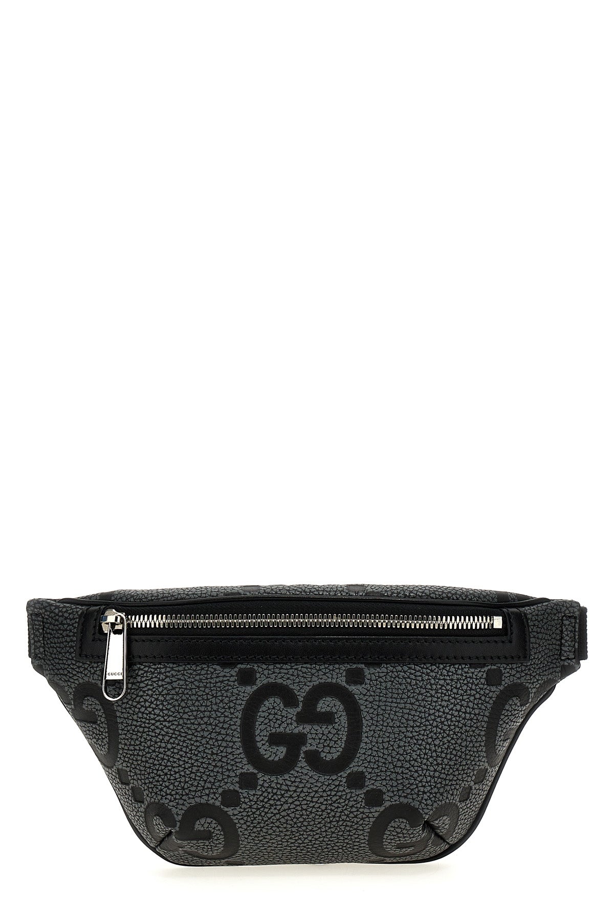 Sac banane Jumbo Gg' en cuir martelé, fermeture éclair, bandoulière en tissu réglable.