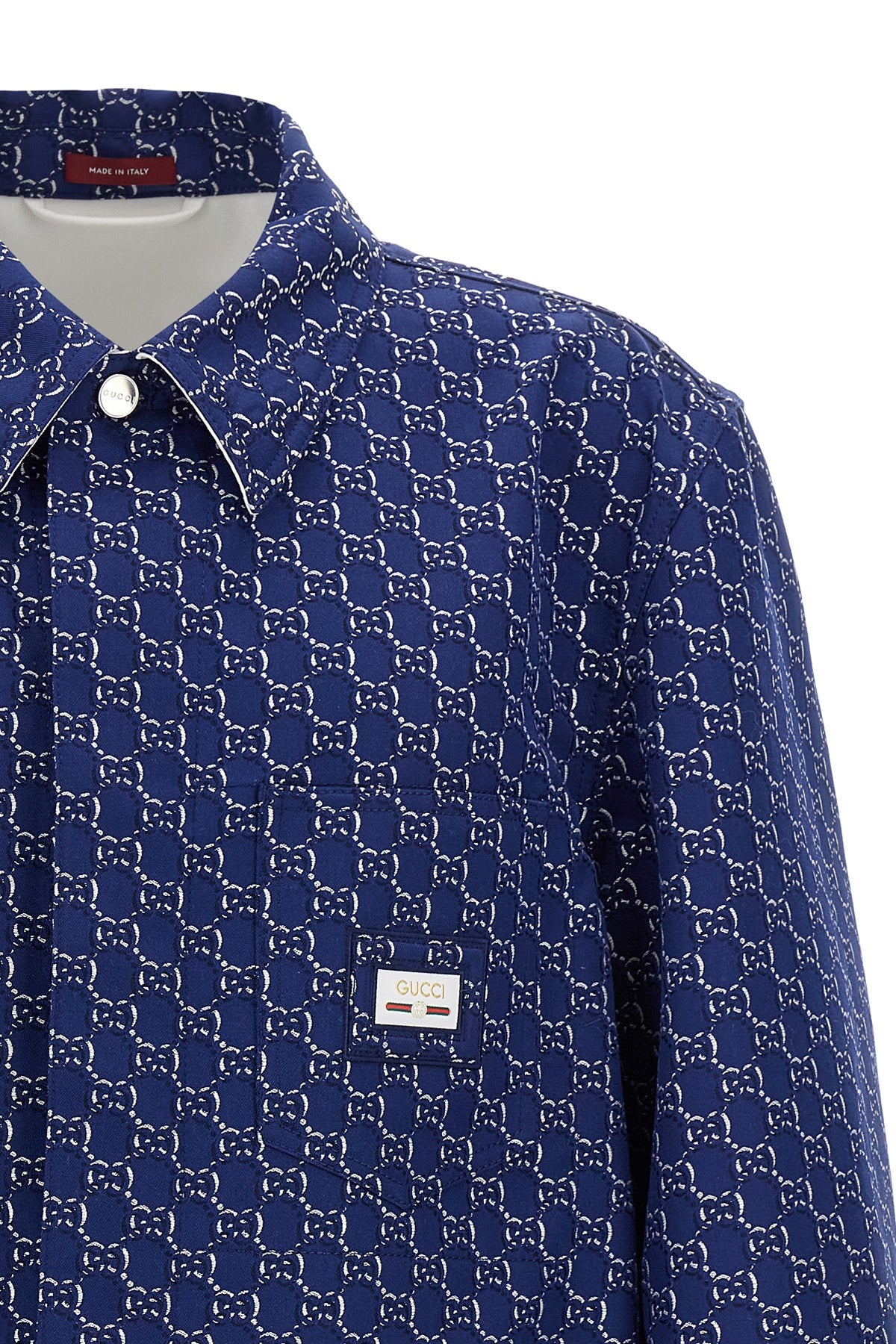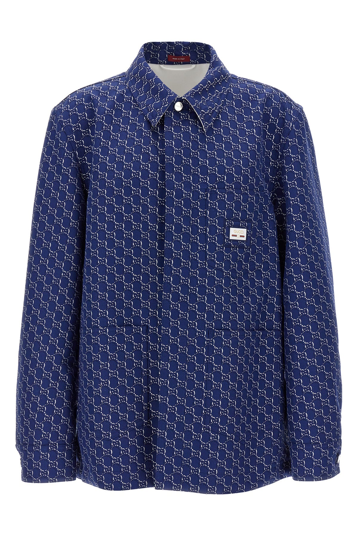 Veste en coton jacquard à motif ' GG Shadow ', poche avec étiquette Web et logo Gucci GG, non doublée, fermeture boutonnée, poches, manches longues avec poignets.