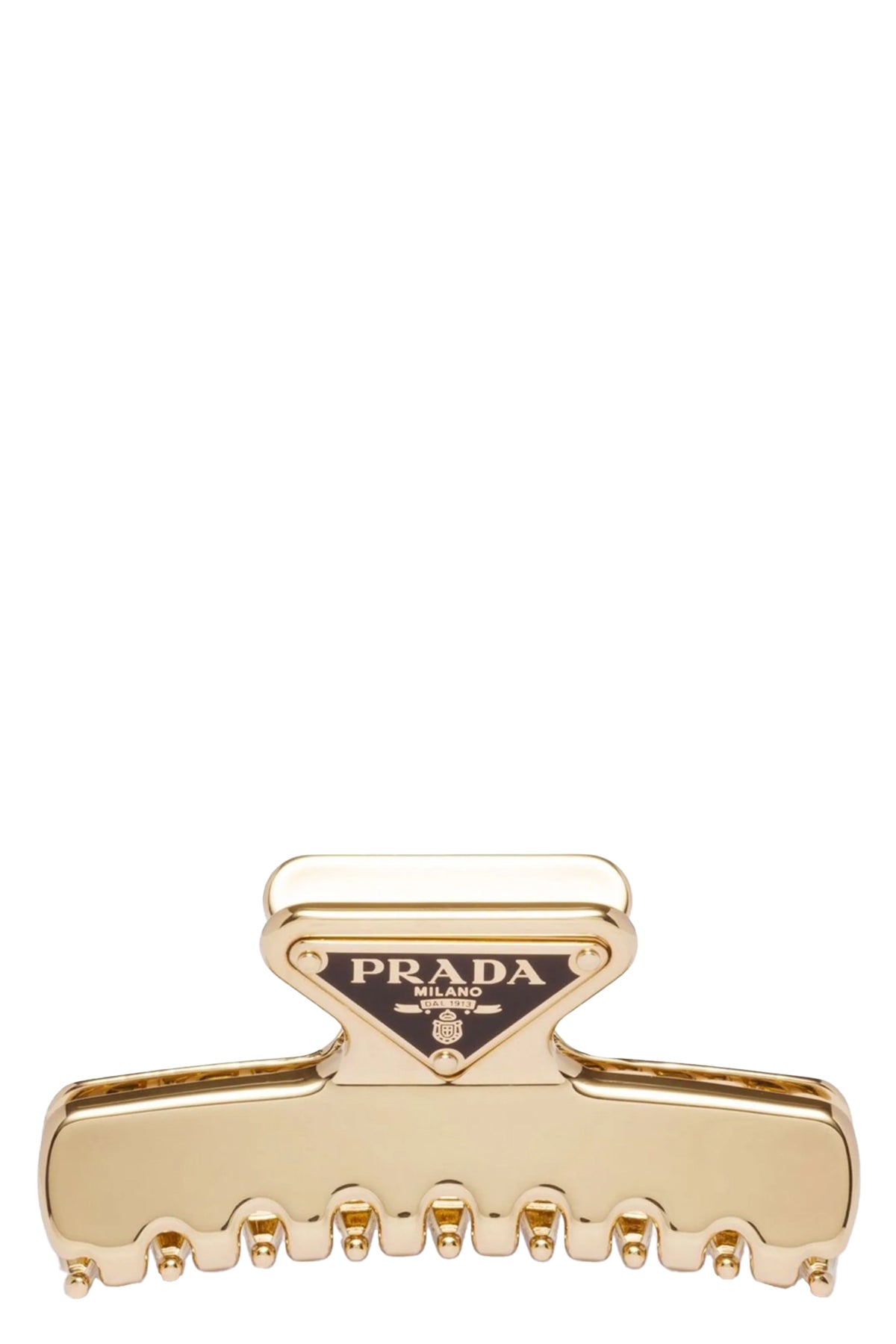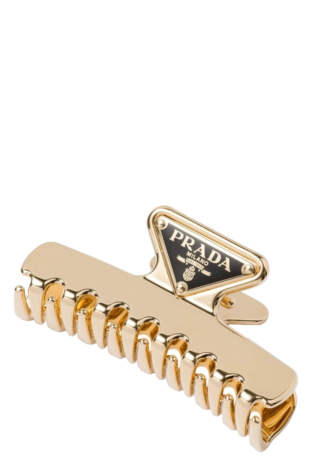 Pince à cheveux en métal avec logo triangulaire émaillé.