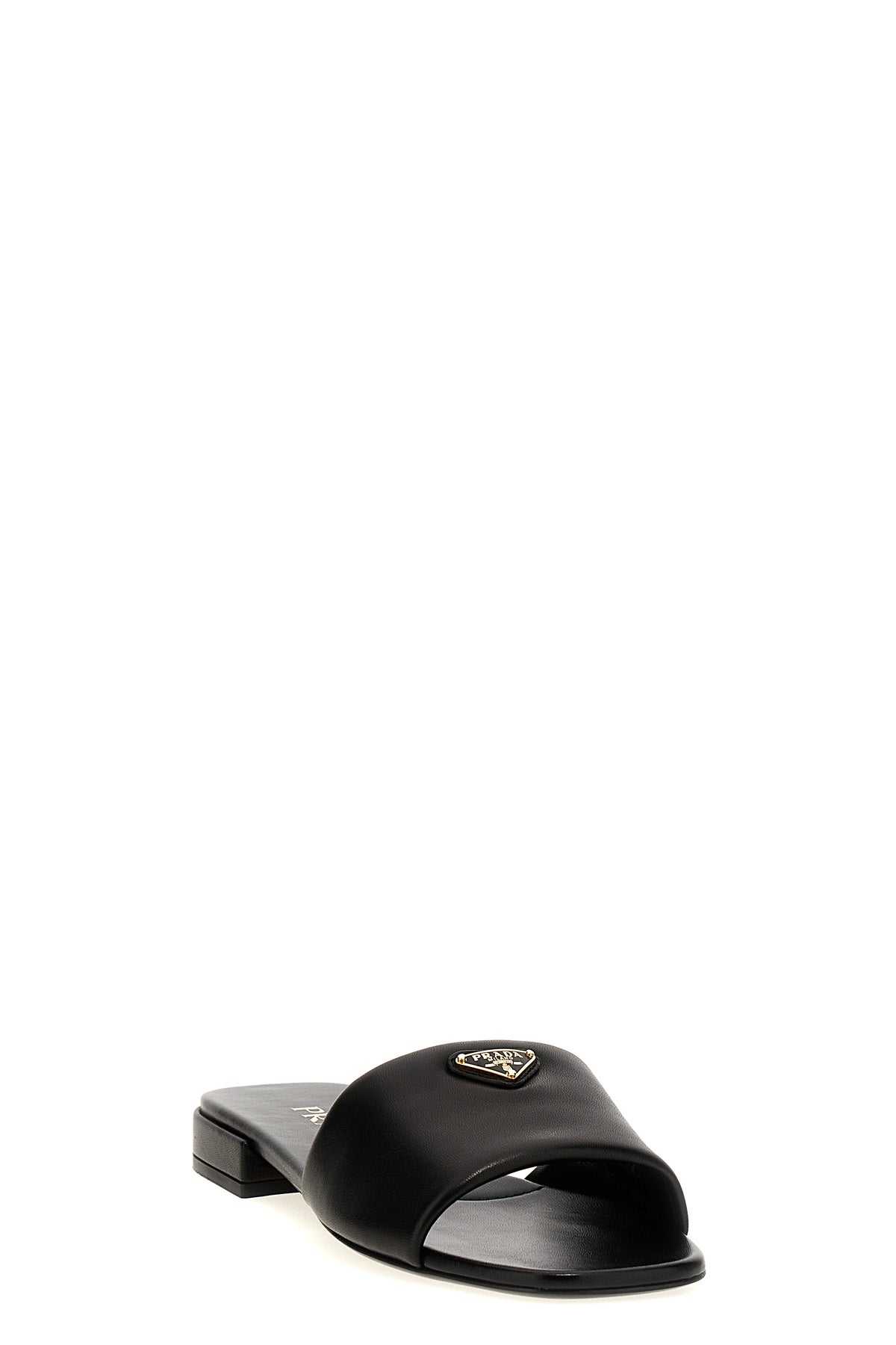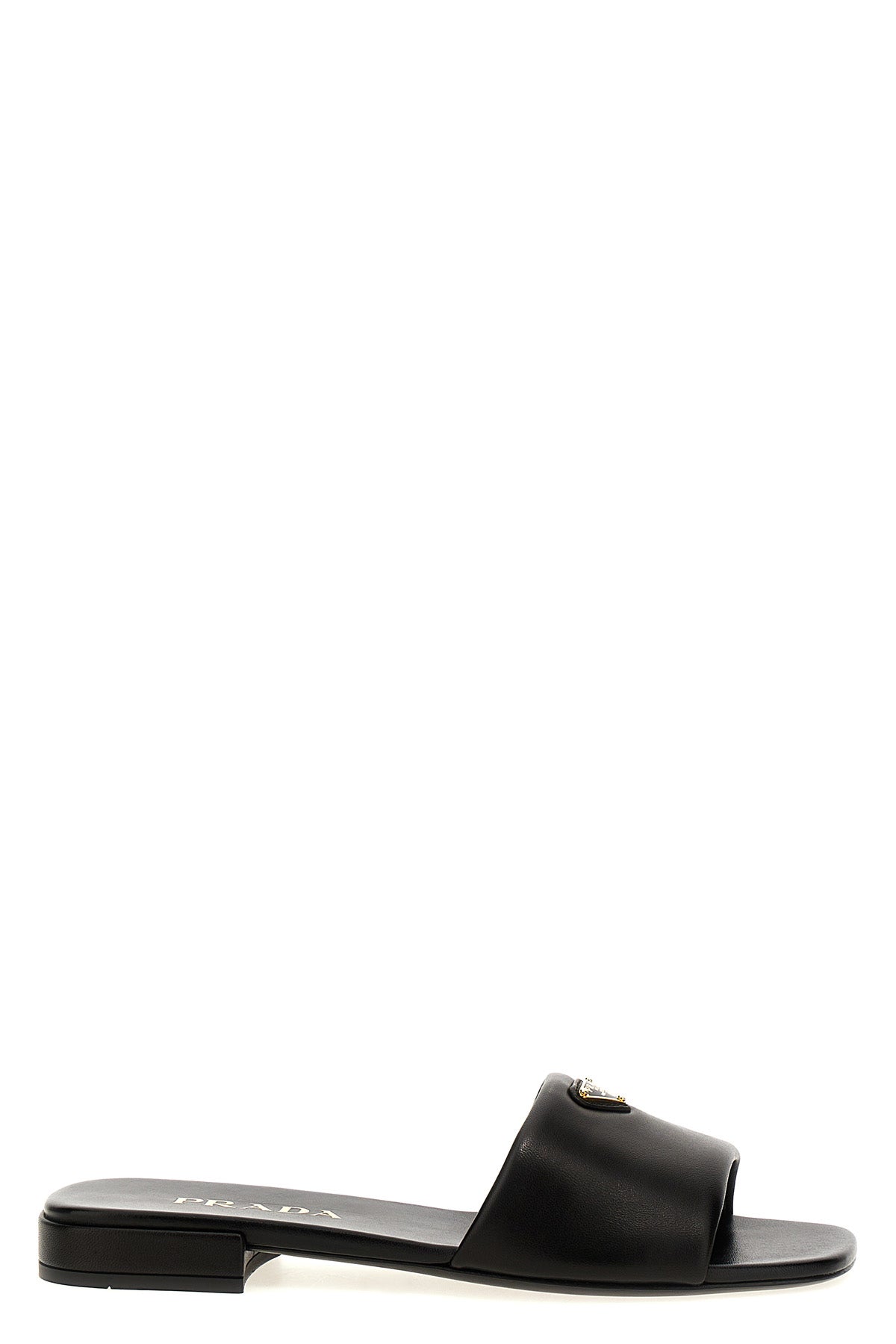 Sandales en cuir avec logo triangulaire en métal émaillé appliqué.