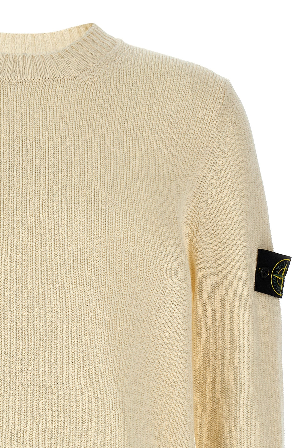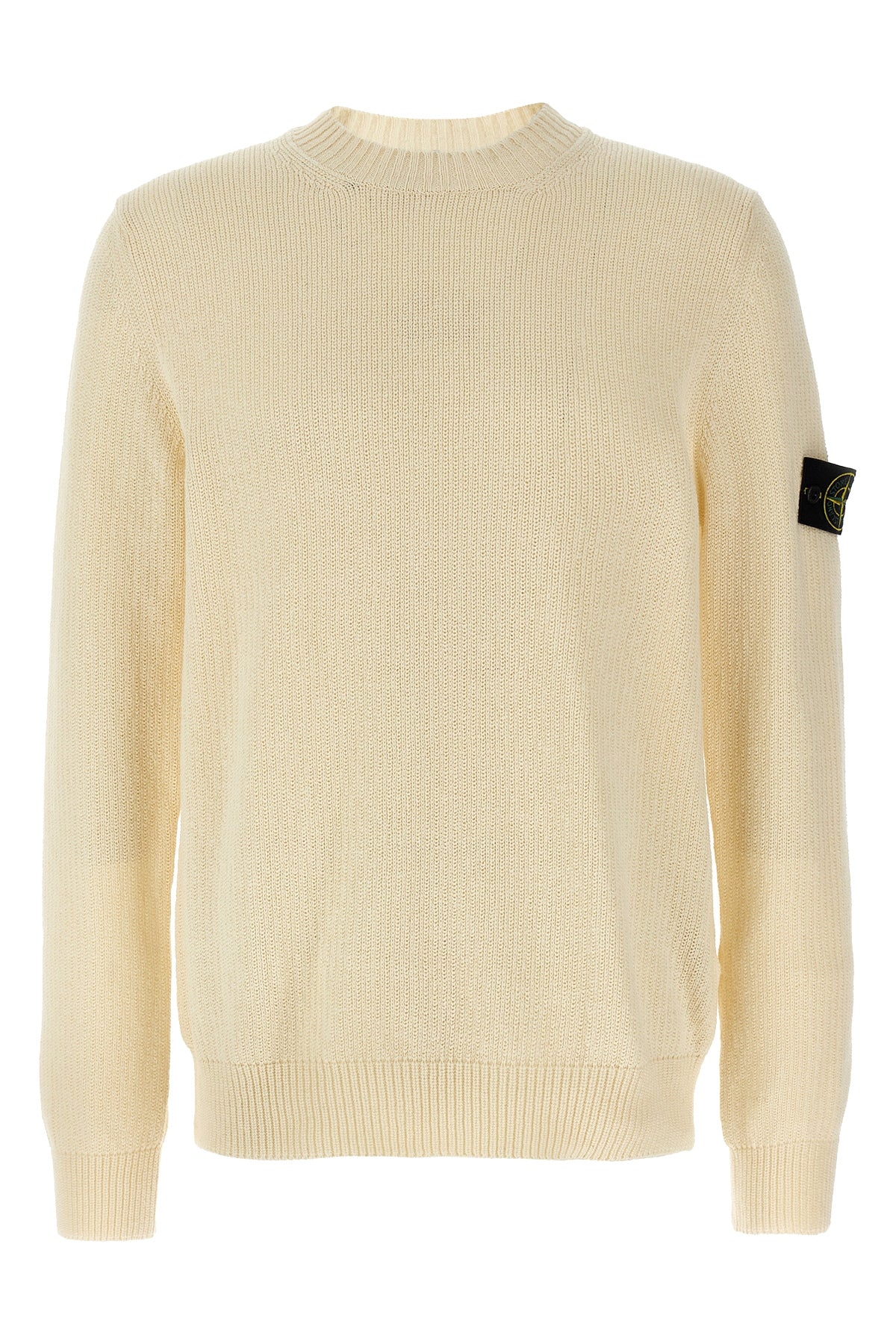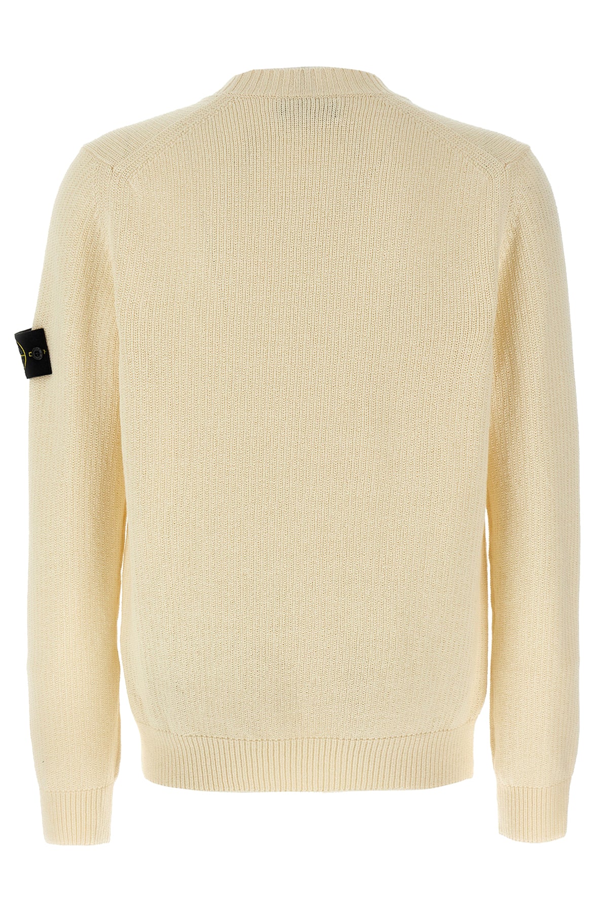 Pull en coton tricoté, col rond, manches longues à poignets boutonnés et écusson logo.